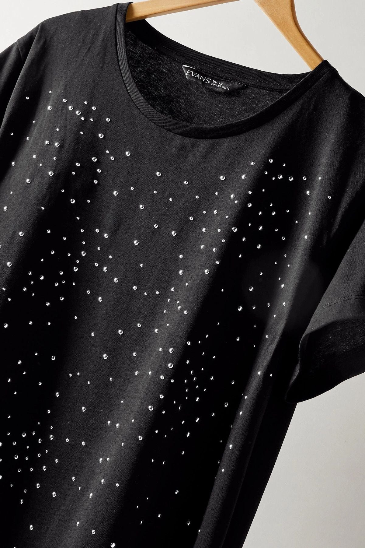 Büyük Beden Bisiklet Yaka Kısa Kollu Taş Yapıştırma Basic T-shirt 615350
