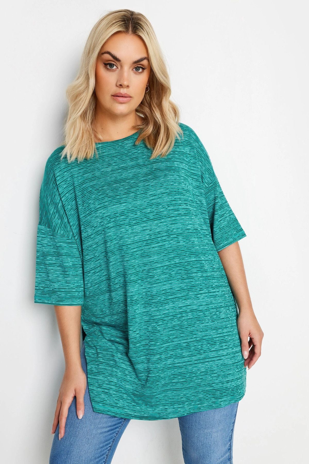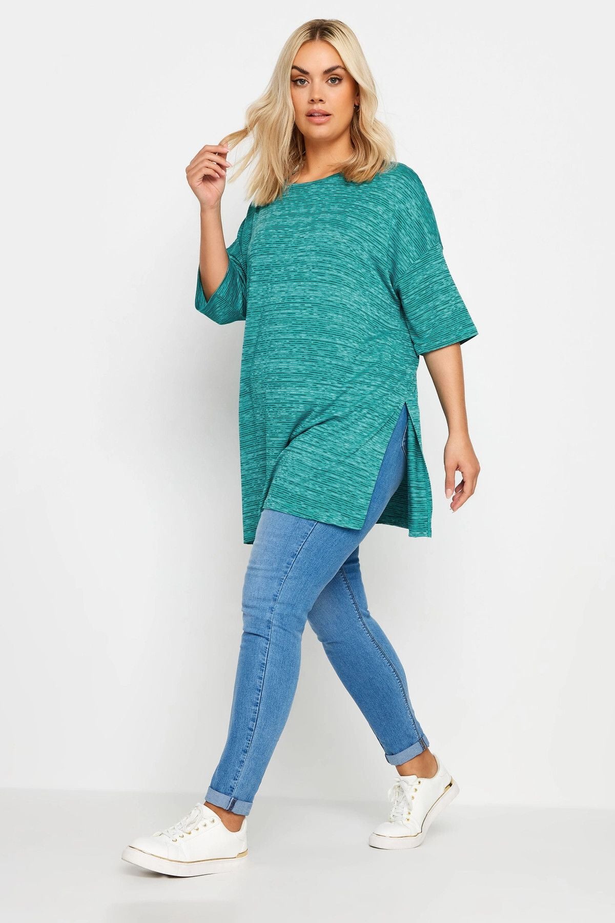 Büyük Beden Bisiklet Yaka Kısa Kollu Yırtmaç Detaylı T-shirt 303021