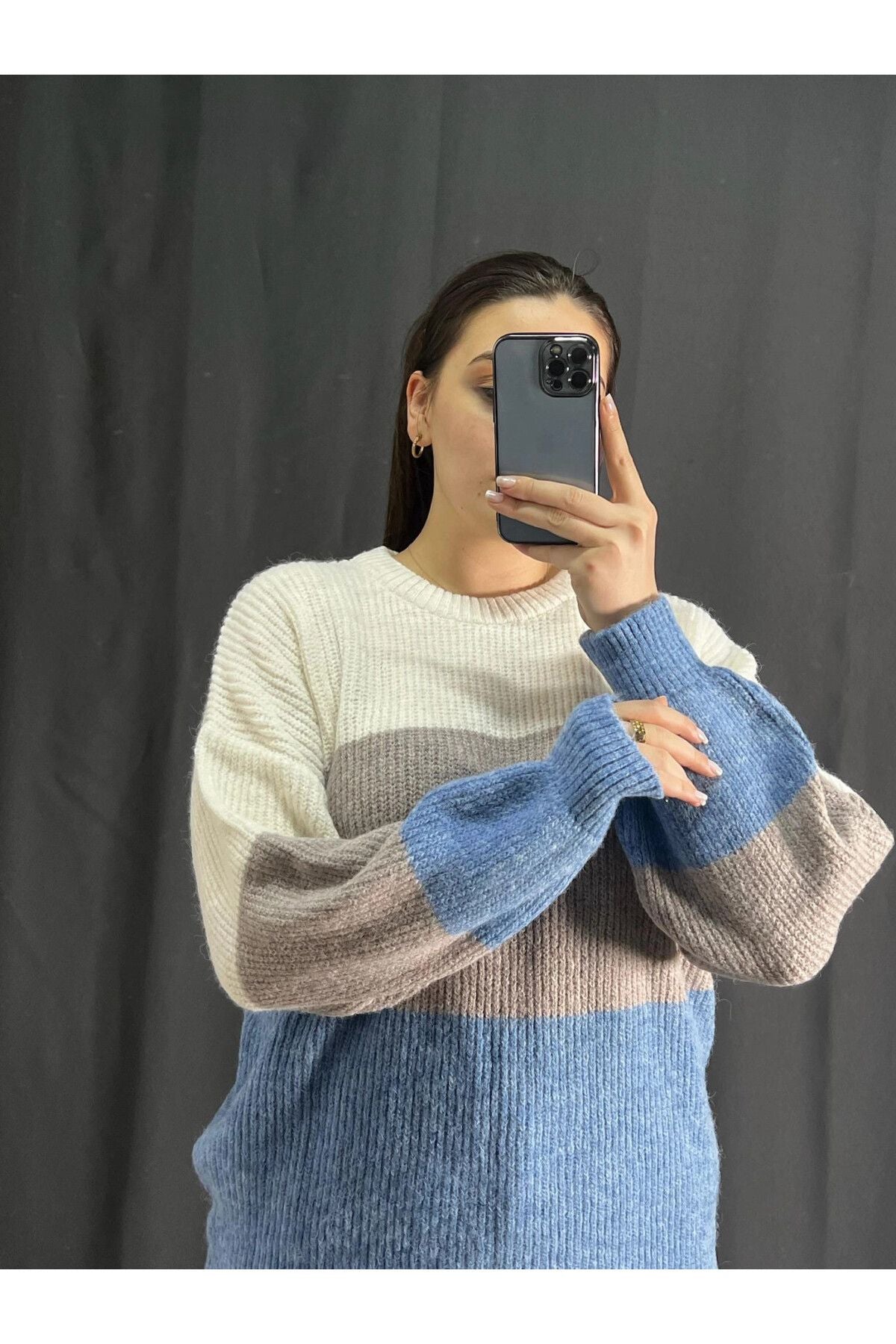 Büyük Beden Bisiklet Yaka Renk Geçişli Uzun Kollu Triko Kazak 302344