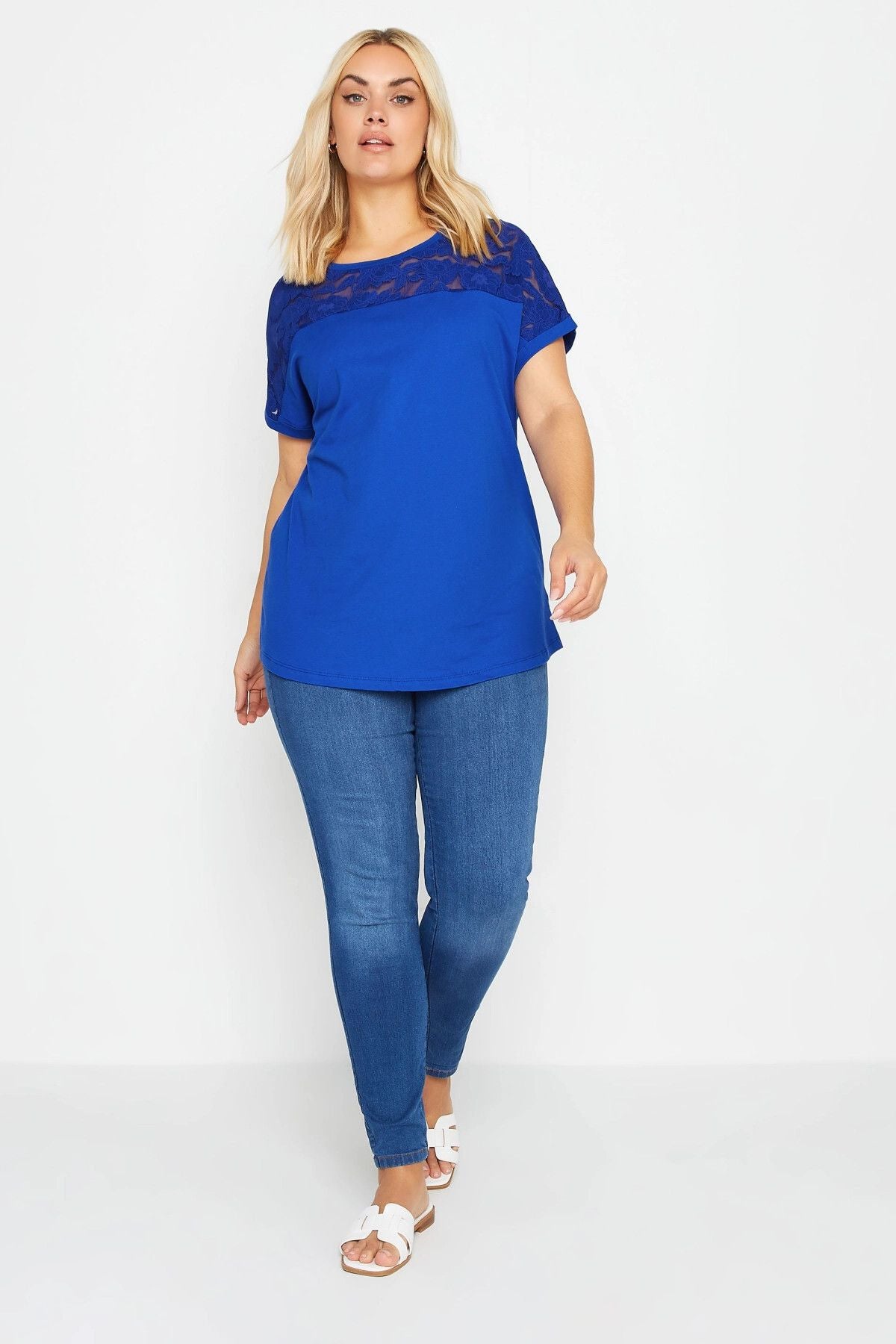 Büyük Beden Bisiklet Yaka Tül Detaylı Kısa Kollu T-shirt 321126