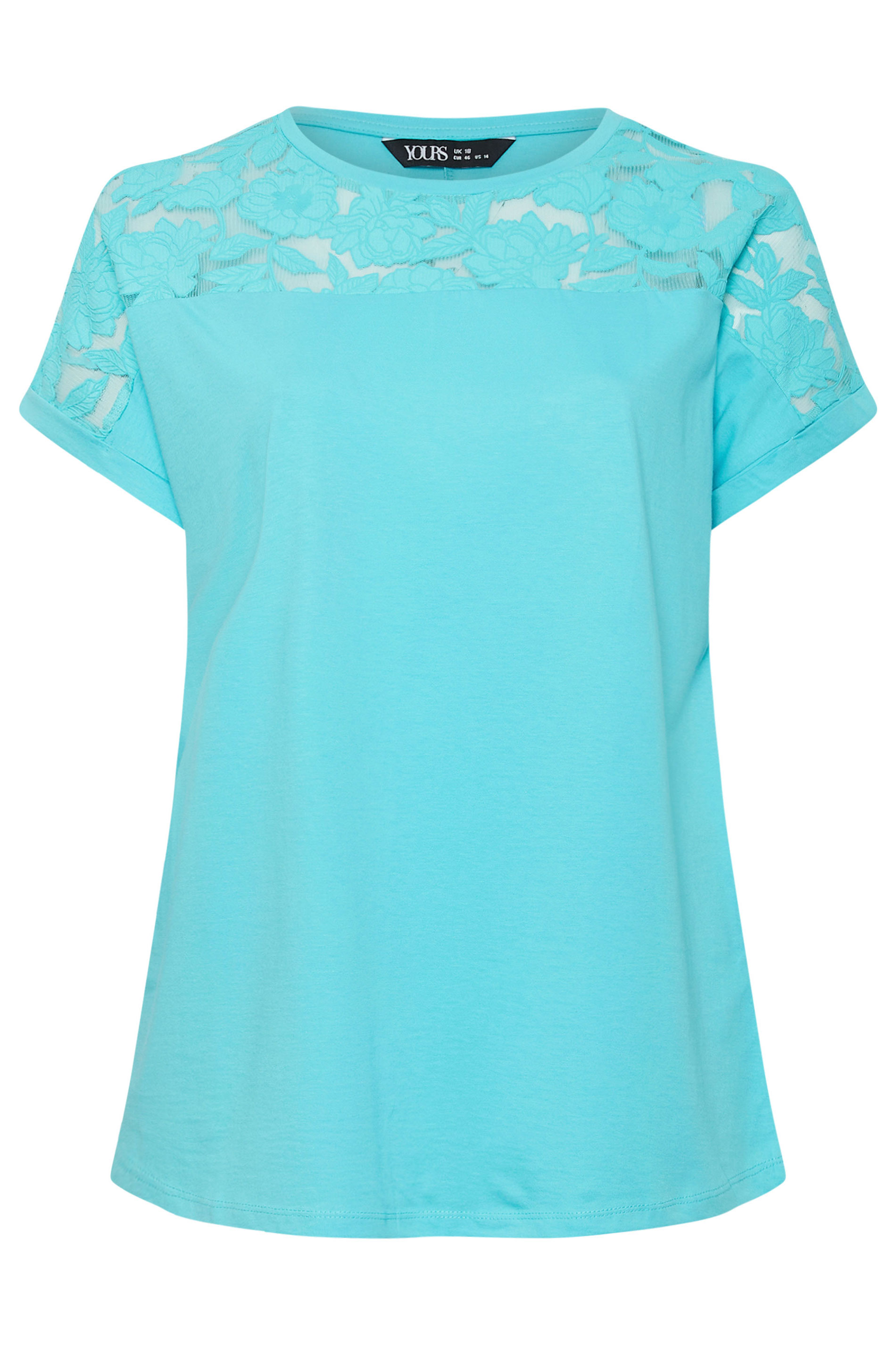 Büyük Beden Bisiklet Yaka Tül Detaylı Kısa Kollu T-shirt 321836