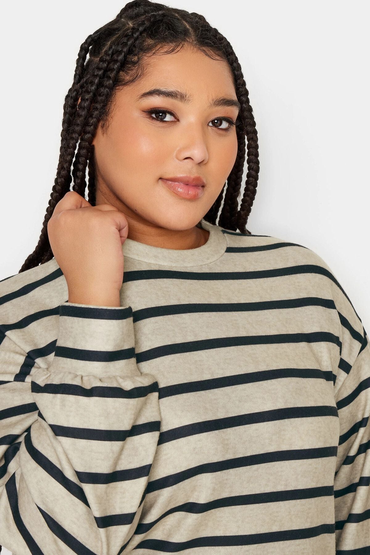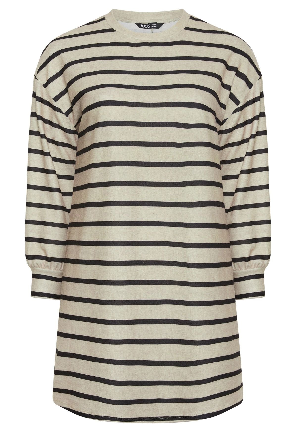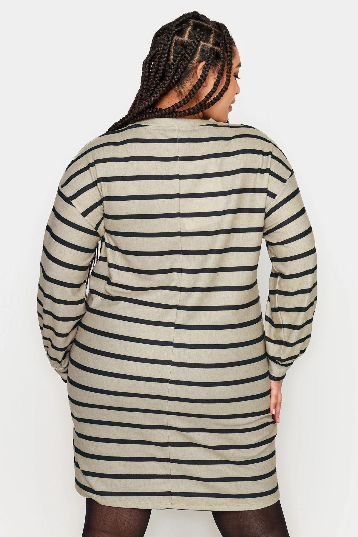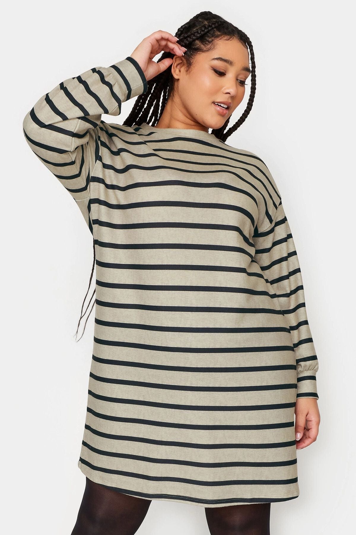 Büyük Beden Bisiklet Yaka Uzun Kollu Çizgili Kısa Elbise 302882