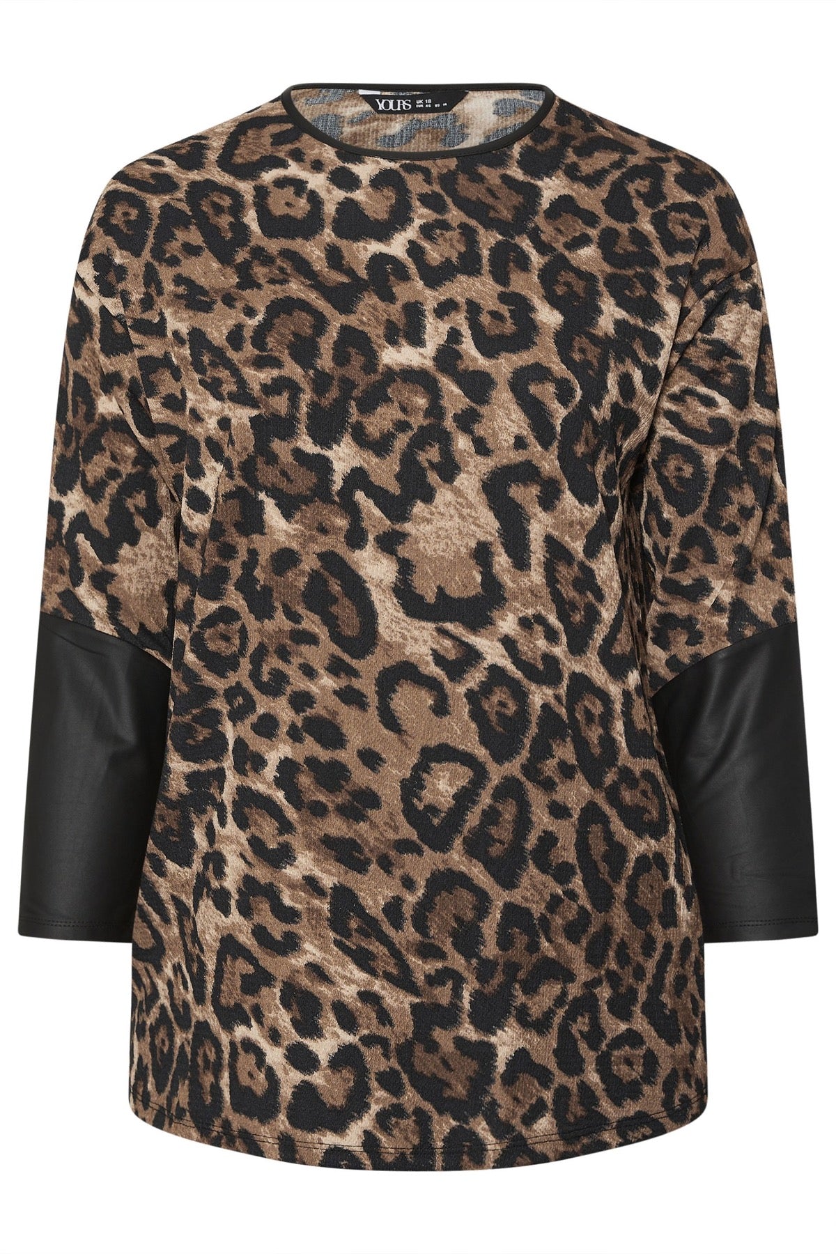 Büyük Beden Bisiklet Yaka Uzun Kollu Deri Detaylı T-shirt 304307