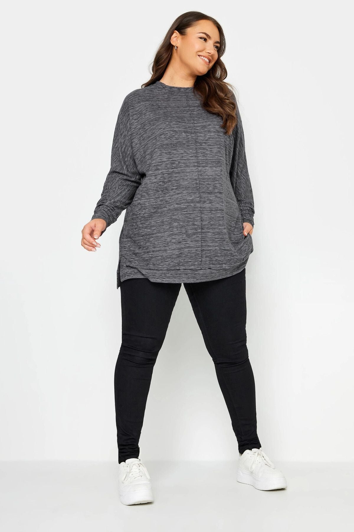 Büyük Beden Bisiklet Yaka Uzun Kollu Dikiş Detaylı Bluz 302862