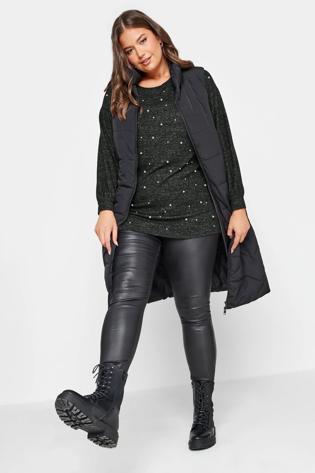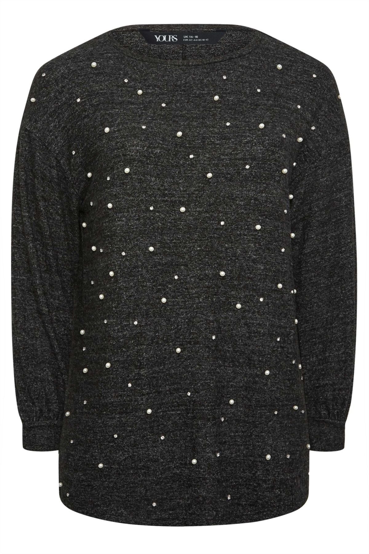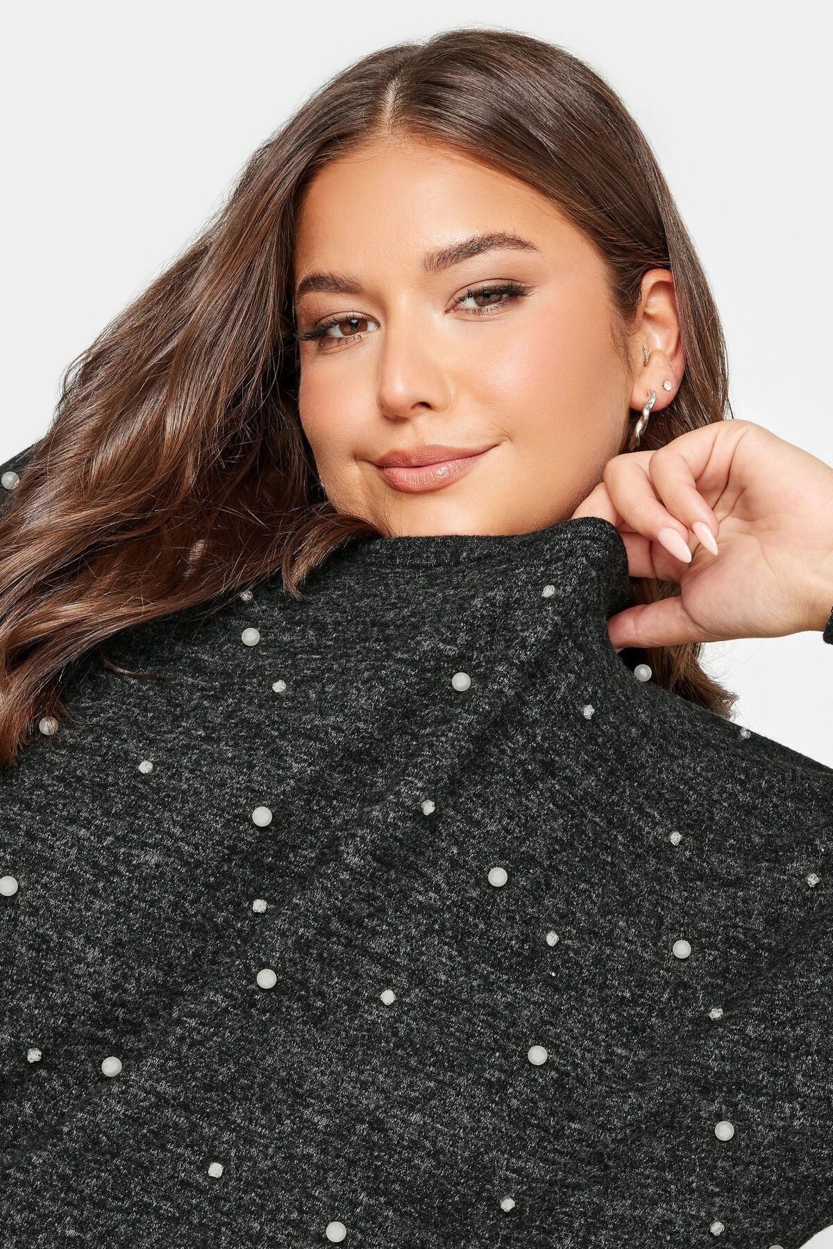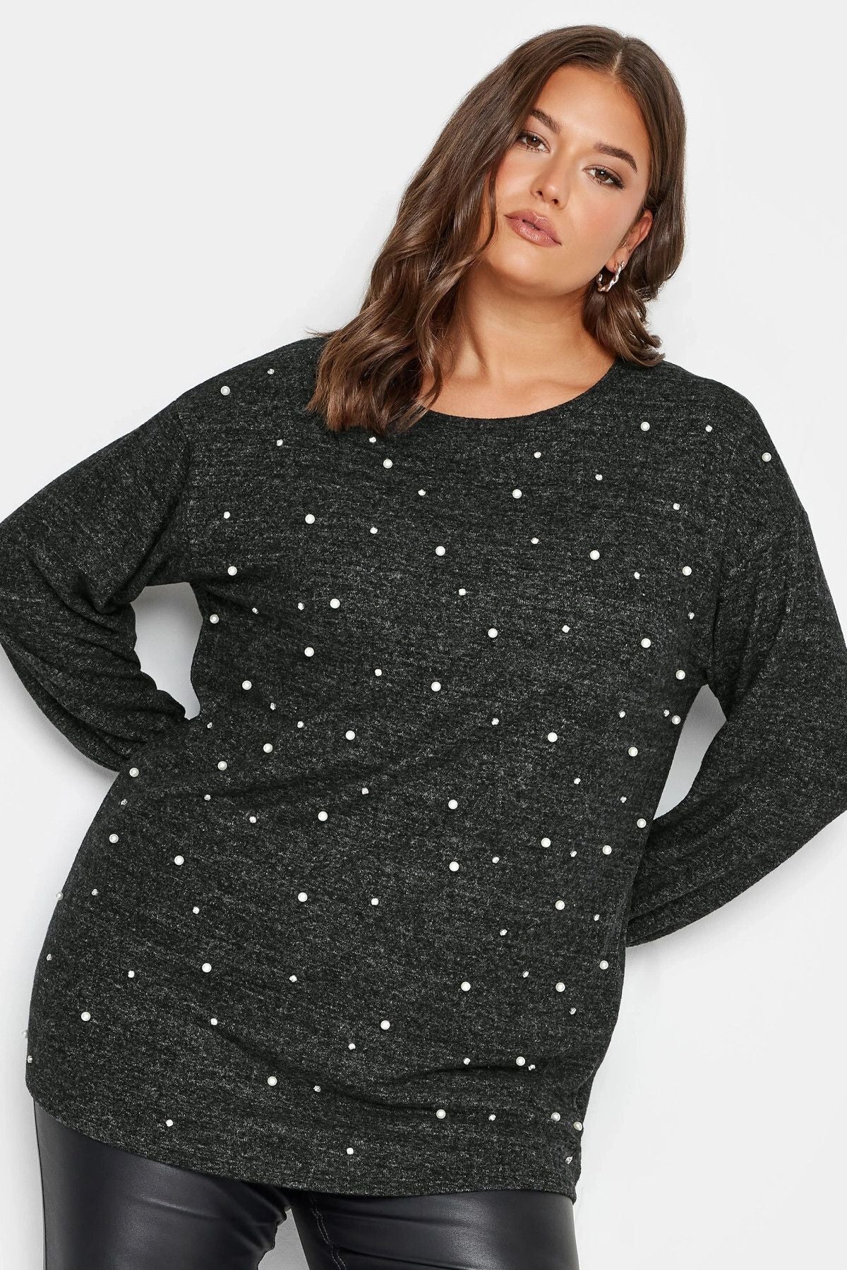 Büyük Beden Bisiklet Yaka Uzun Kollu İnci İşlemeli Bluz 302623