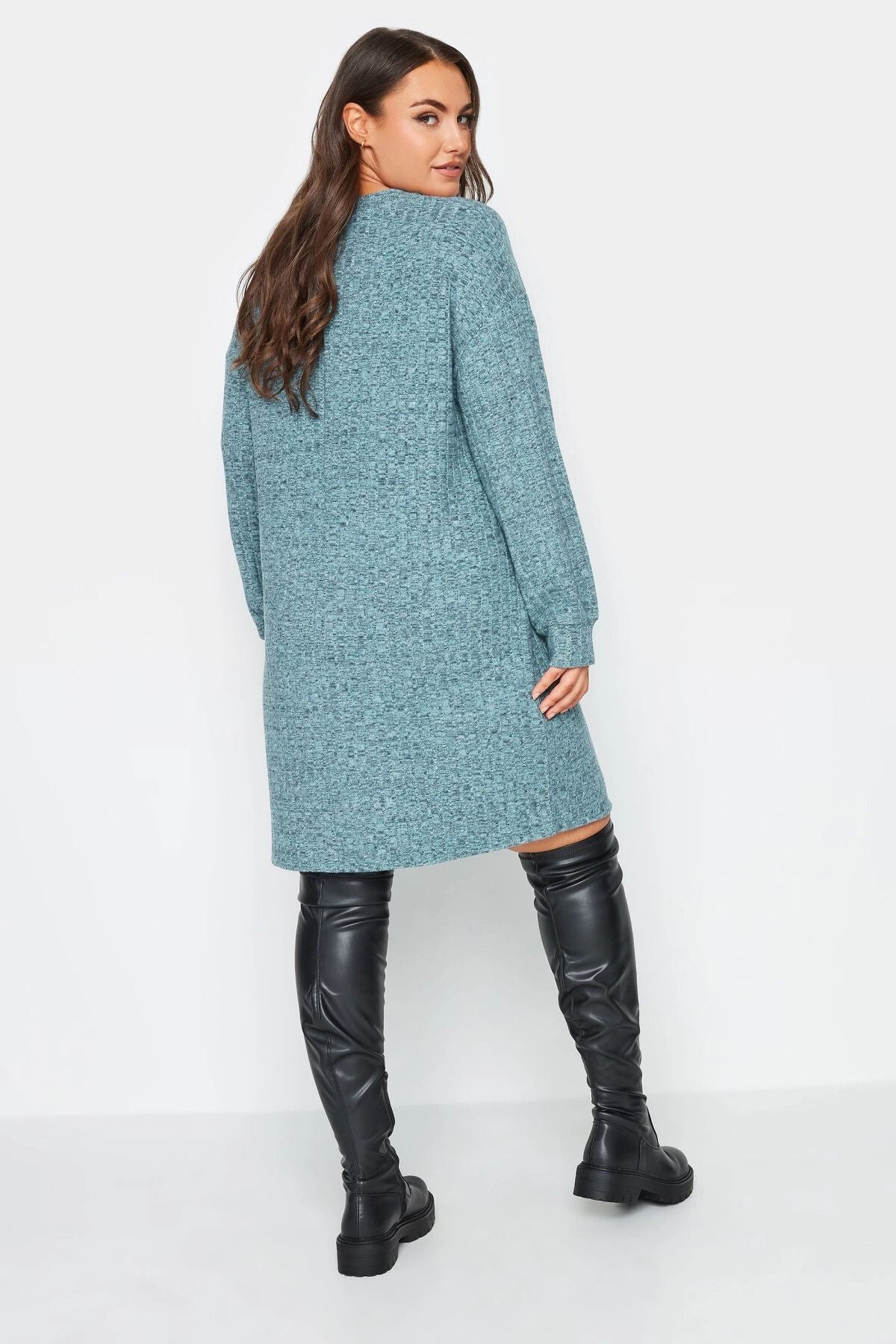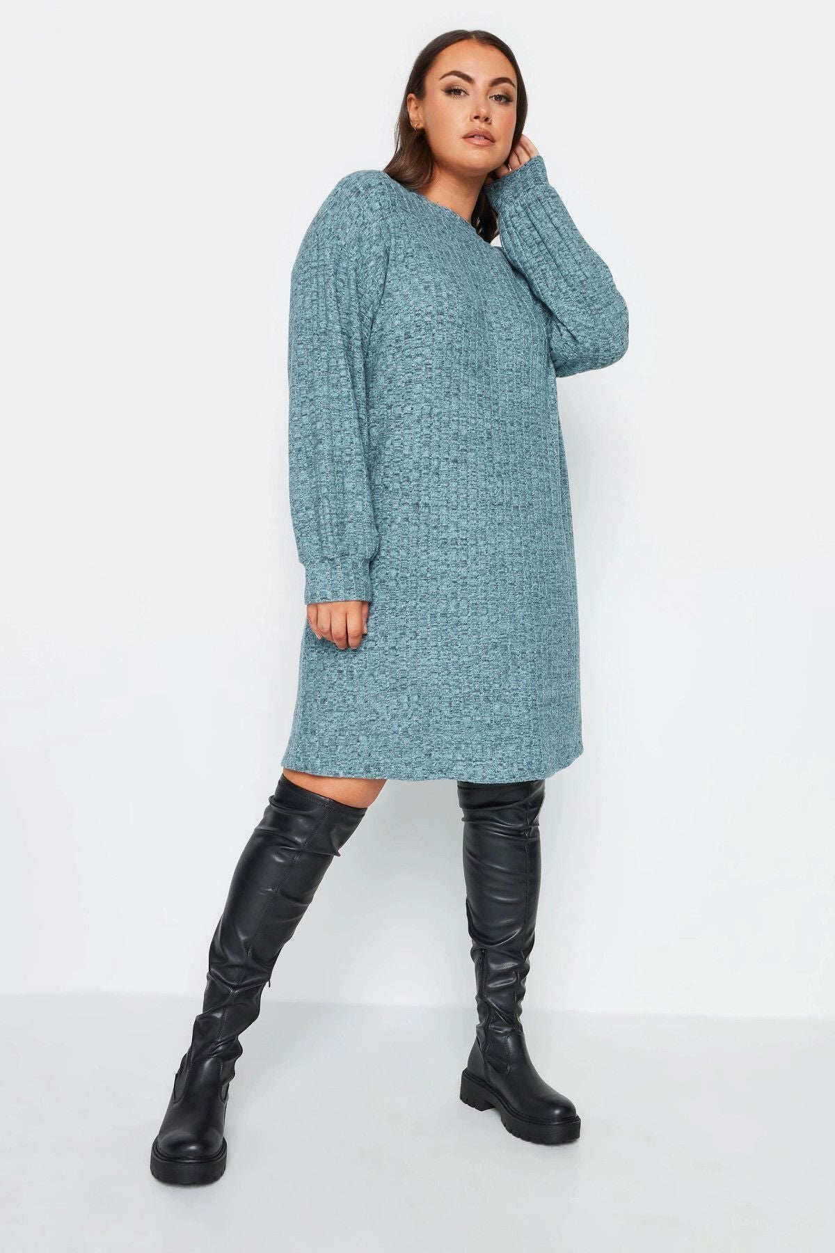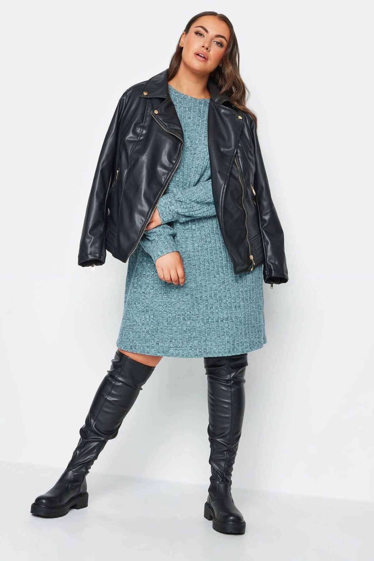 Büyük Beden Bisiklet Yaka Uzun Kollu Örme Kısa Elbise 302611