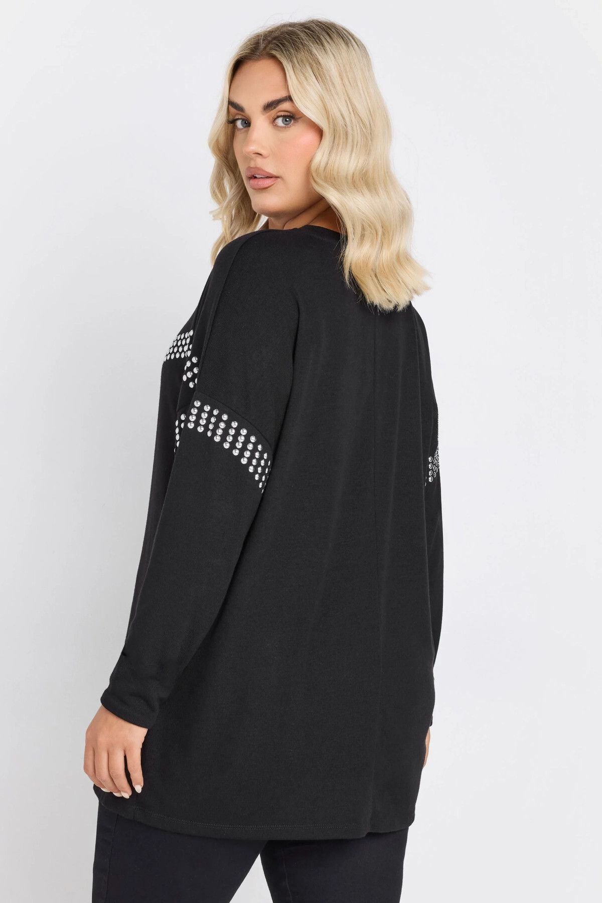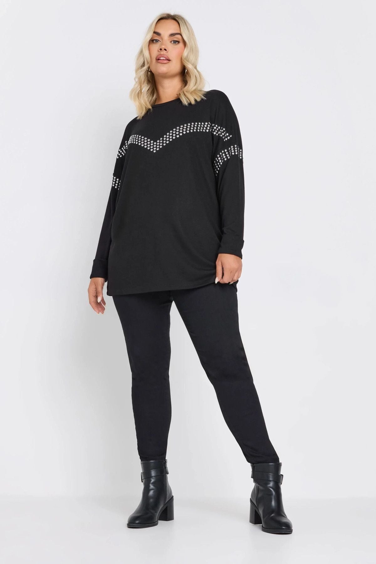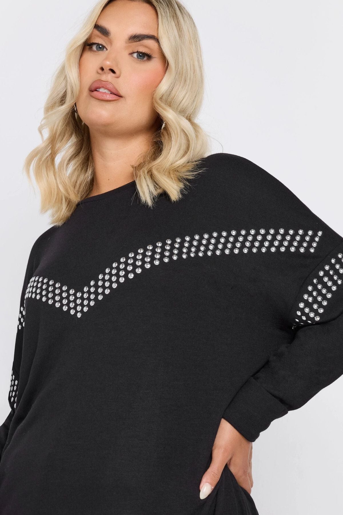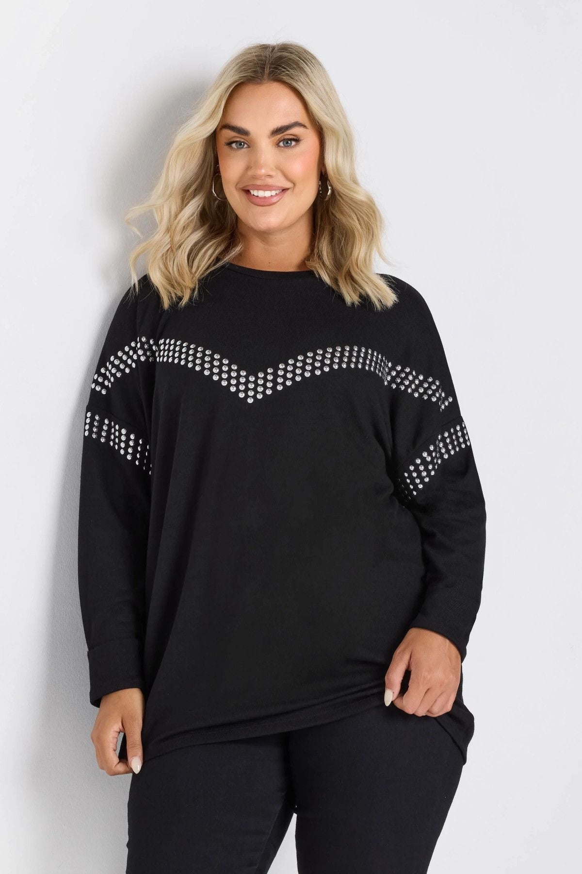 Büyük Beden Bisiklet Yaka Uzun Kollu Pul İşlemeli Bluz 322183