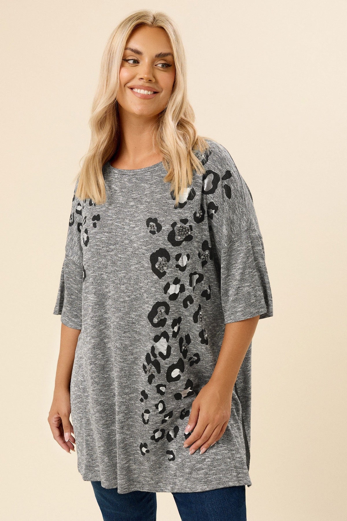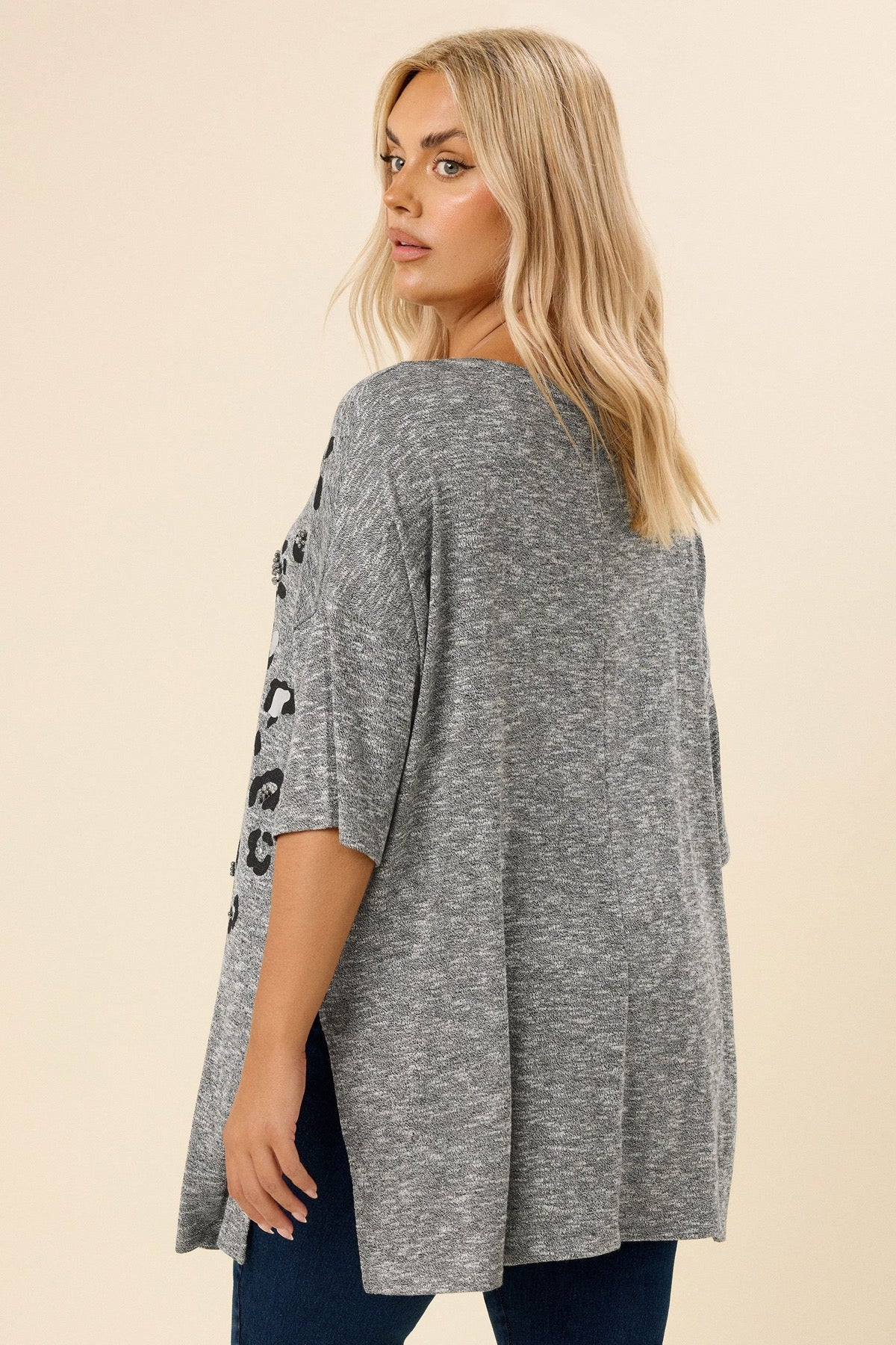 Büyük Beden Bisiklet Yaka Yarım Kol Yanı Yırtmaçlı Boncuklu Tunik 304279