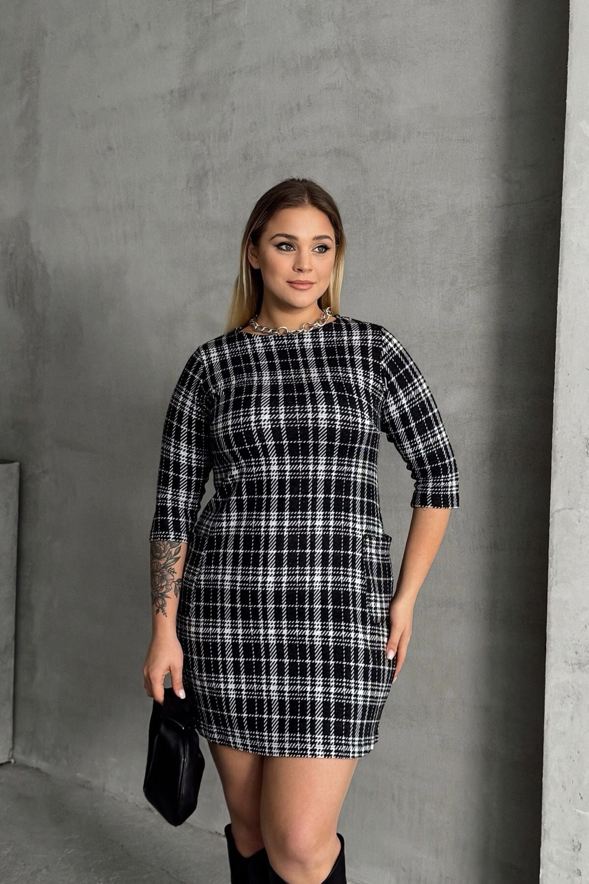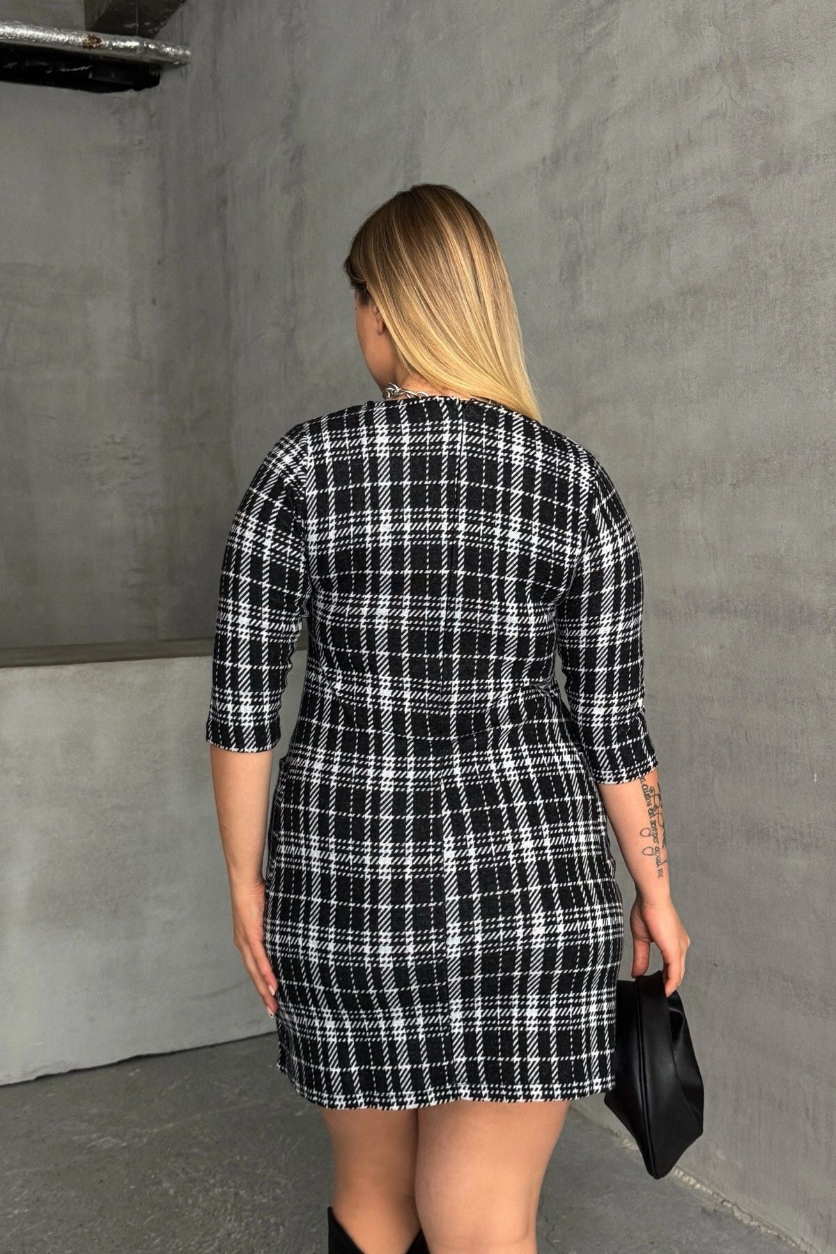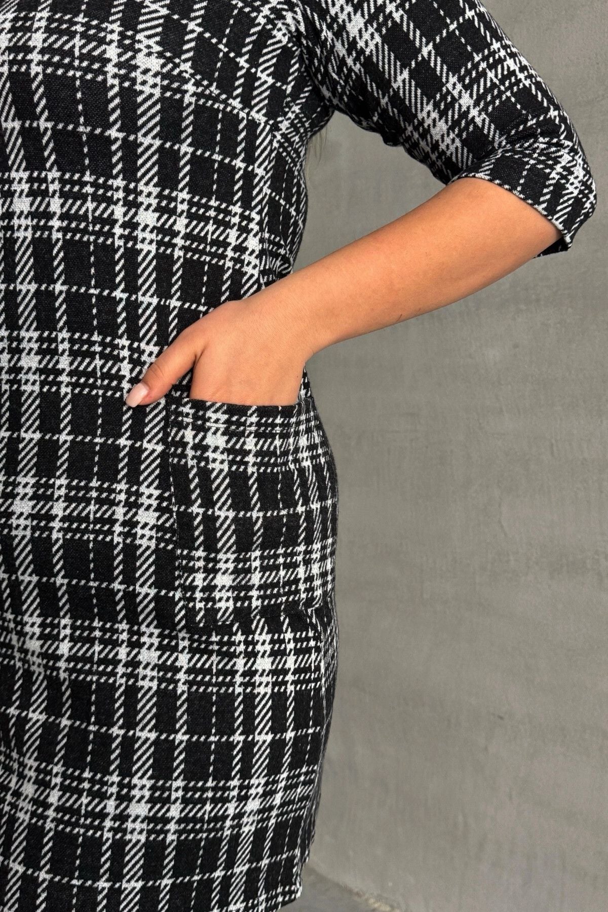 Büyük Beden Bisiklet Yaka Yarım Kollu Cepli Desenli Elbise 301506
