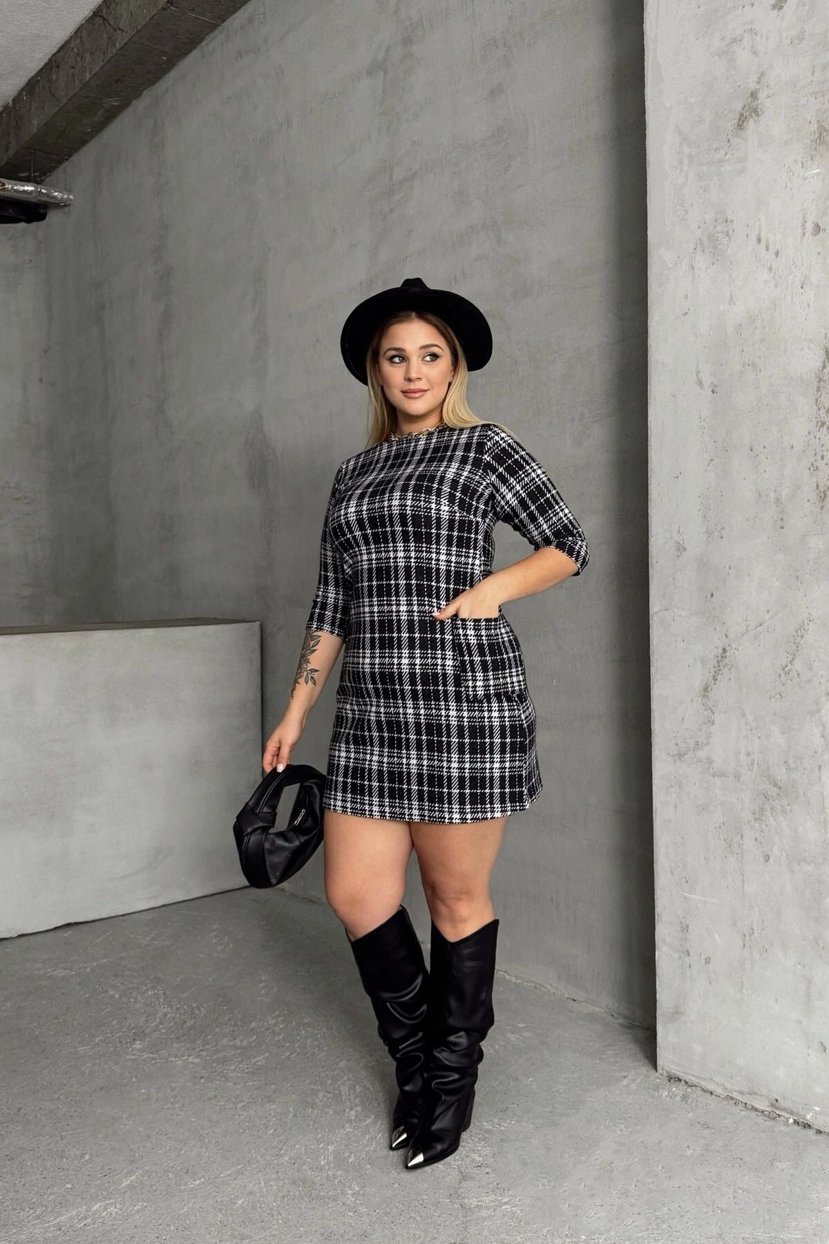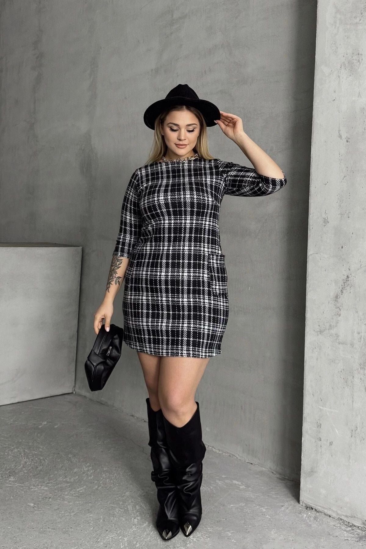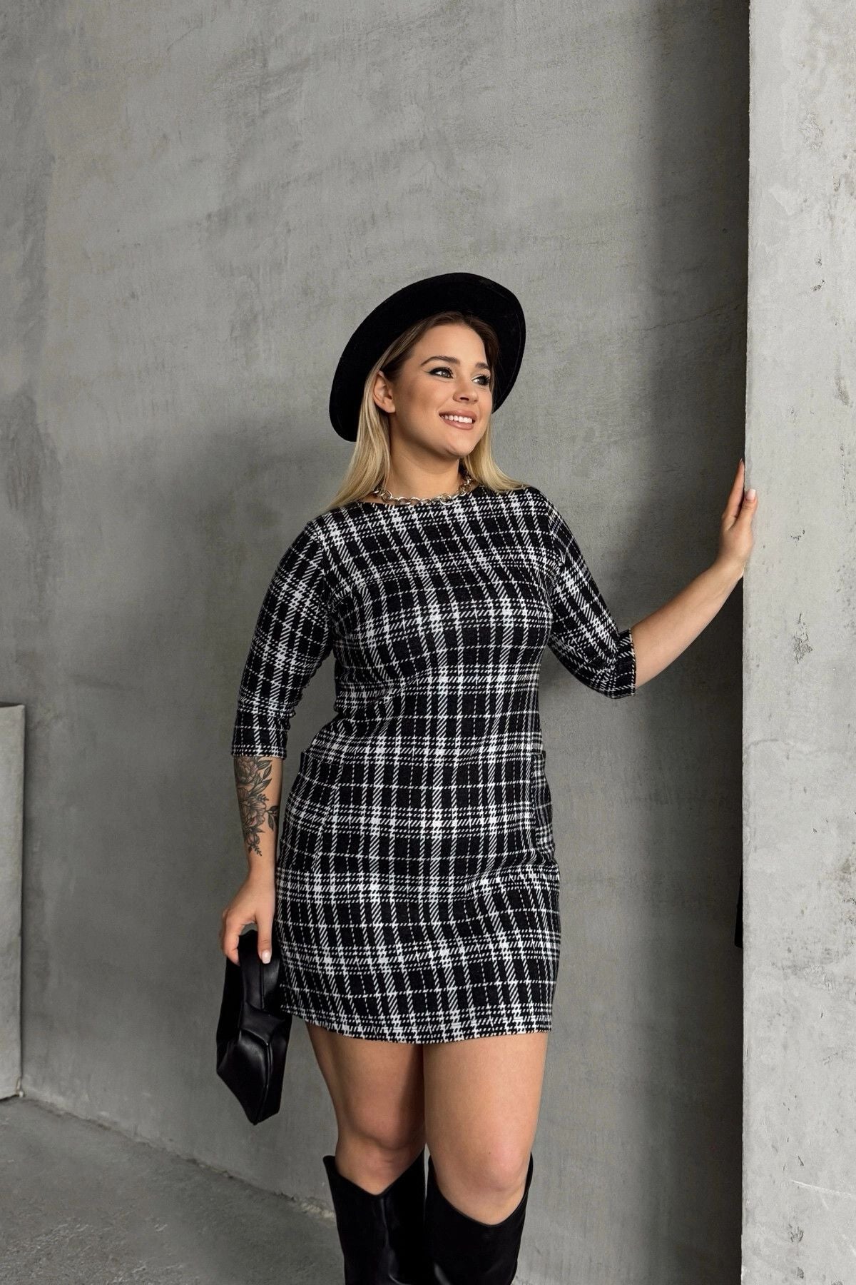 Büyük Beden Bisiklet Yaka Yarım Kollu Cepli Desenli Elbise 301506