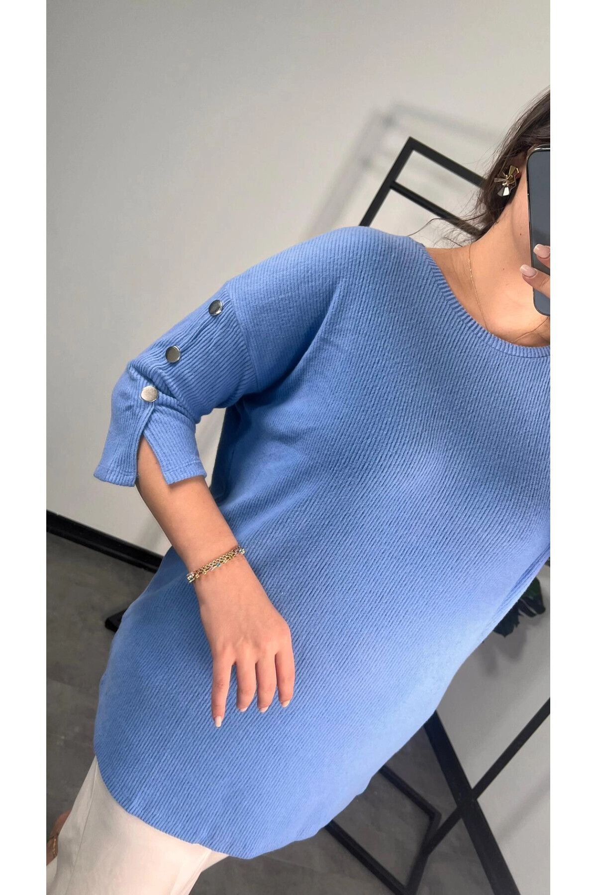 Büyük Beden Bisiklet Yaka Yarım Kollu Düğme Detaylı Bluz 301597