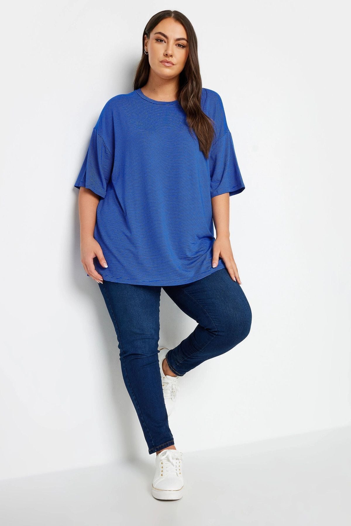 Büyük Beden Bisiklet Yaka Yarım Kollu Uzun Kesim T-shirt 302547
