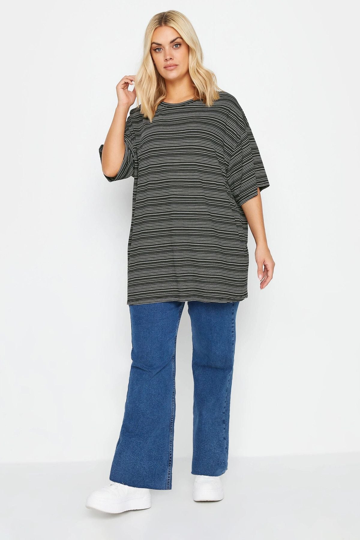 Büyük Beden Bisiklet Yaka Yarım Kollu Uzun Kesim T-shirt 302549