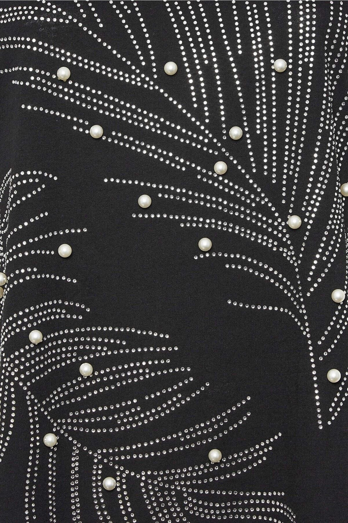 Büyük Beden Bisiklet Yaka Yırtmaç Detaylı Boncuk İşlemeli T-shirt 302044