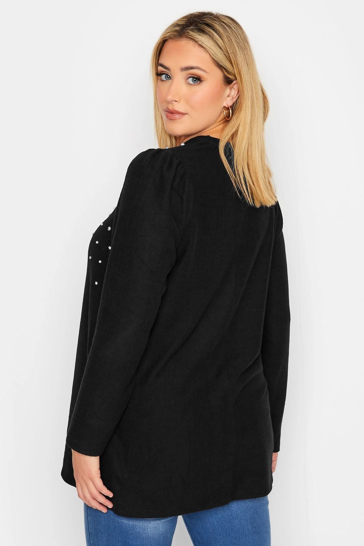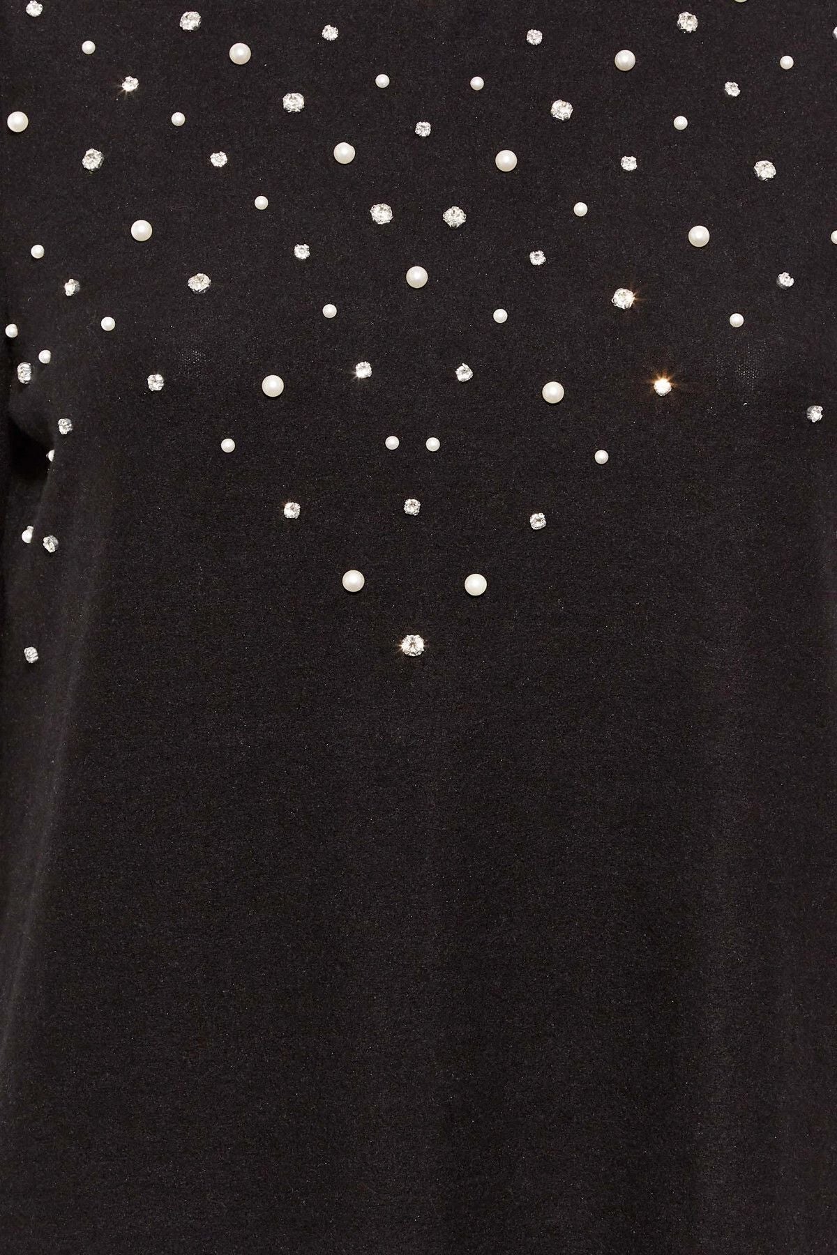 Büyük Beden Bisiklet Yaka Yumuşak Dokulu İnci İşlemeli Bluz 301421