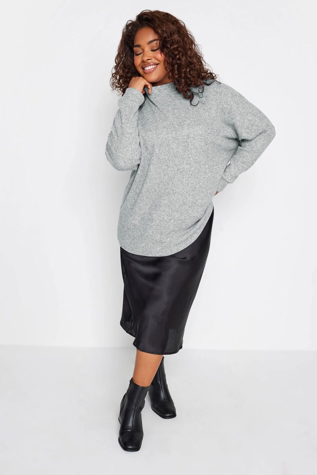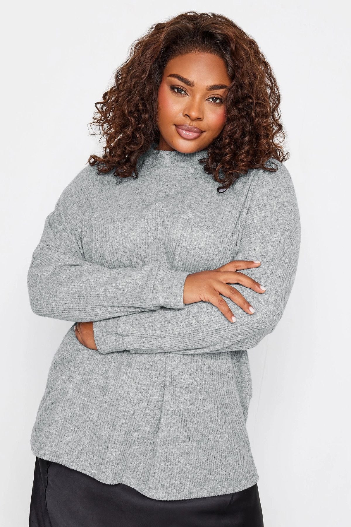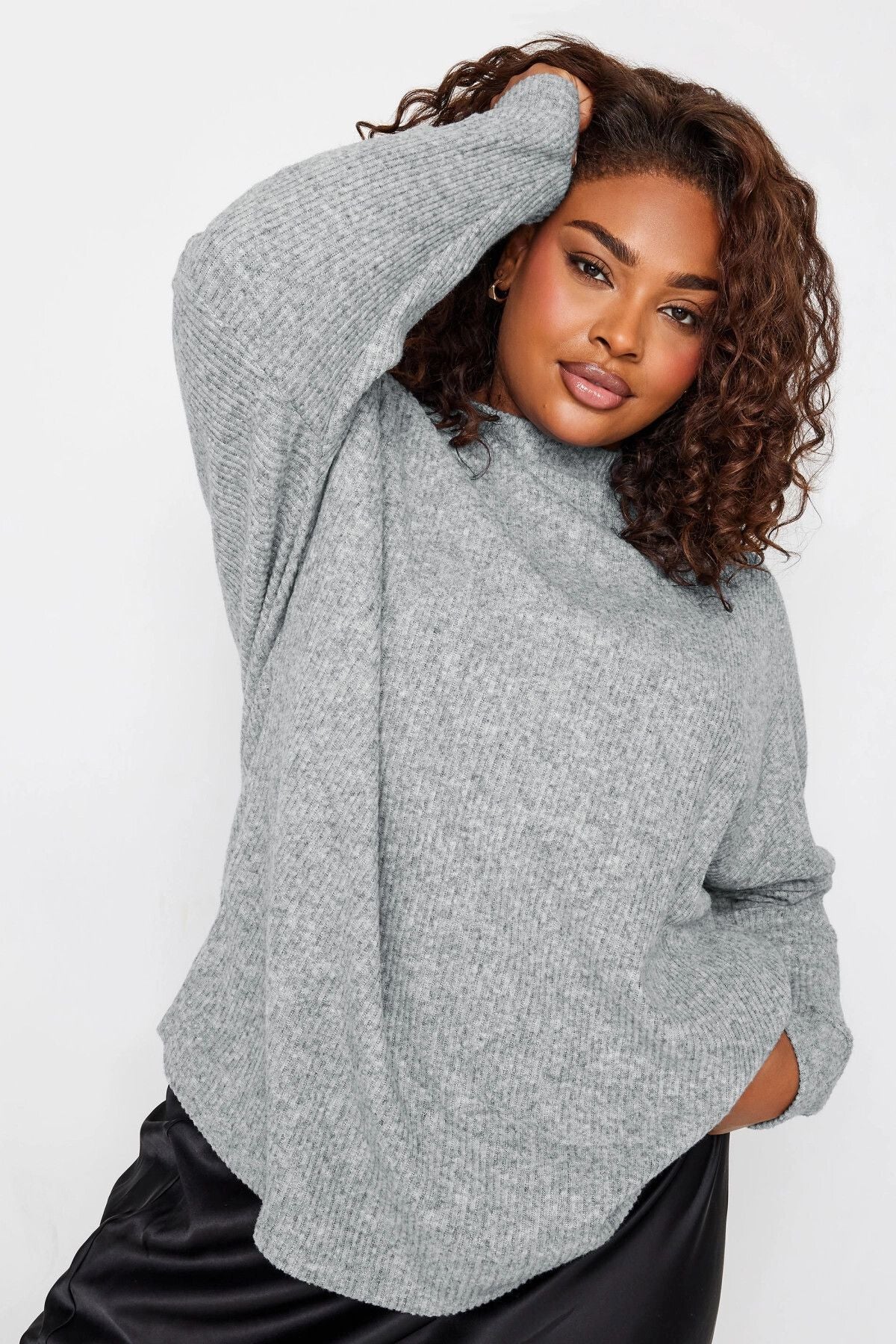 Büyük Beden Boğazlı Uzun Kollu Yumuşak Örme Kumaştan Kazak 302665