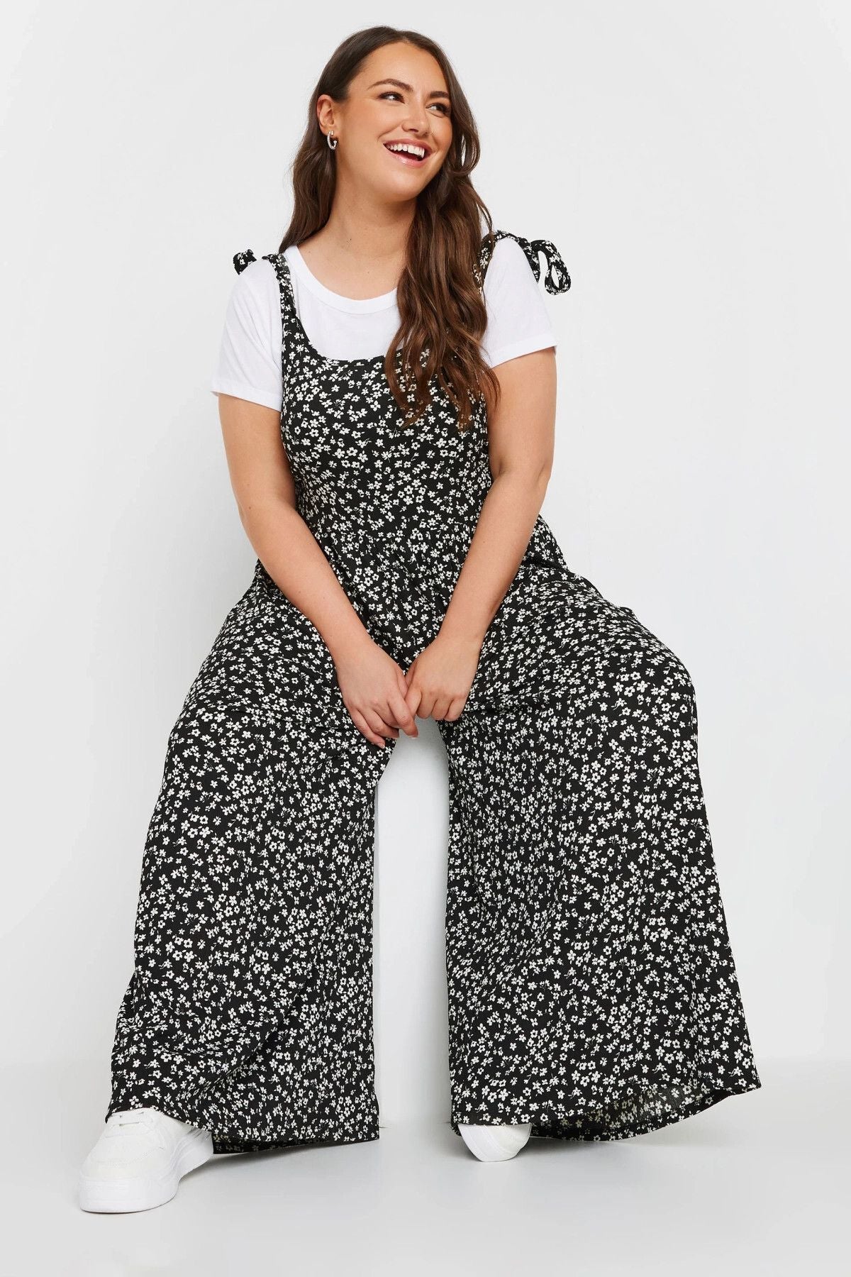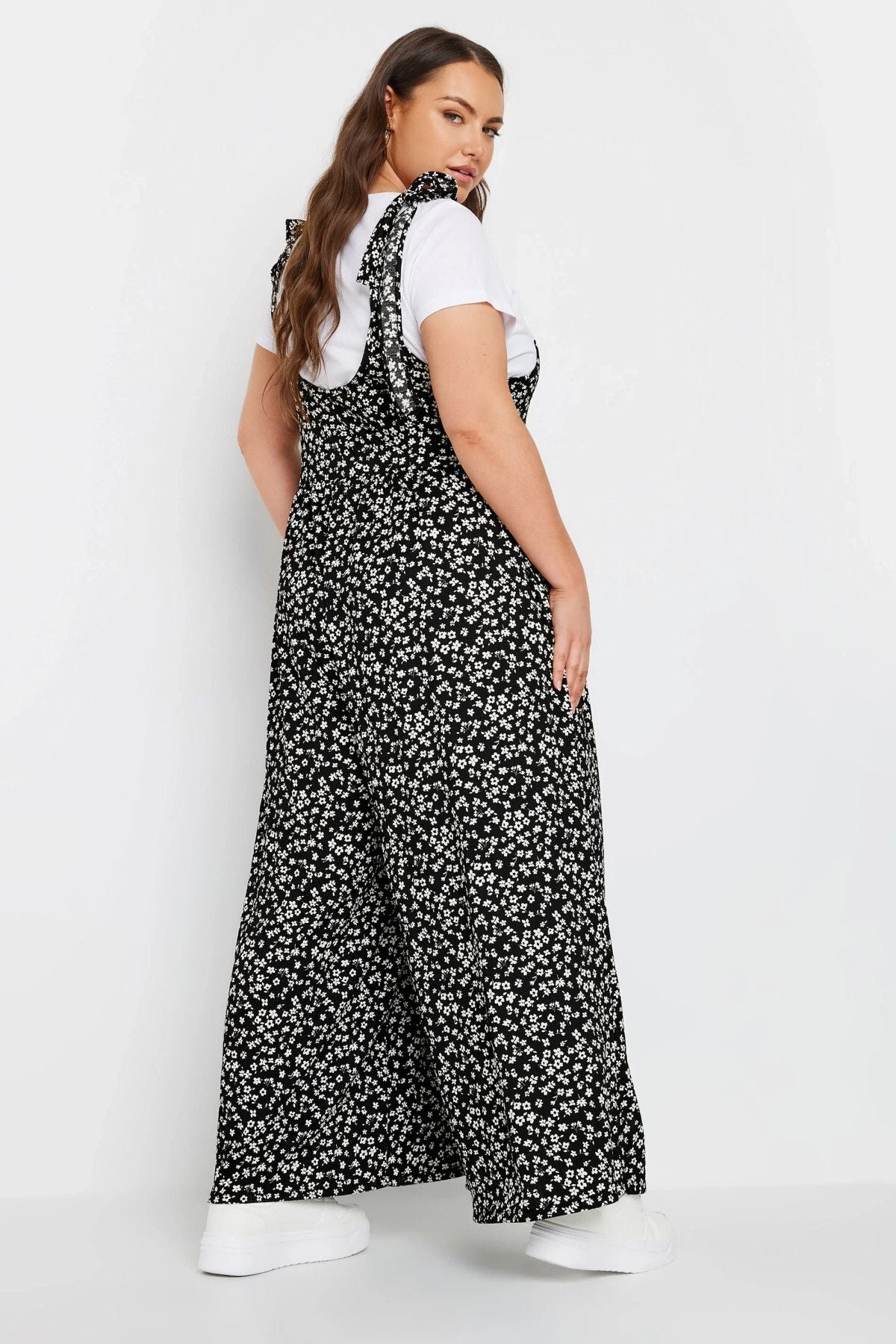 Büyük Beden Bol Paça Askıları Bağlamalı Çiçek Desenli Maxi Tulum 137986