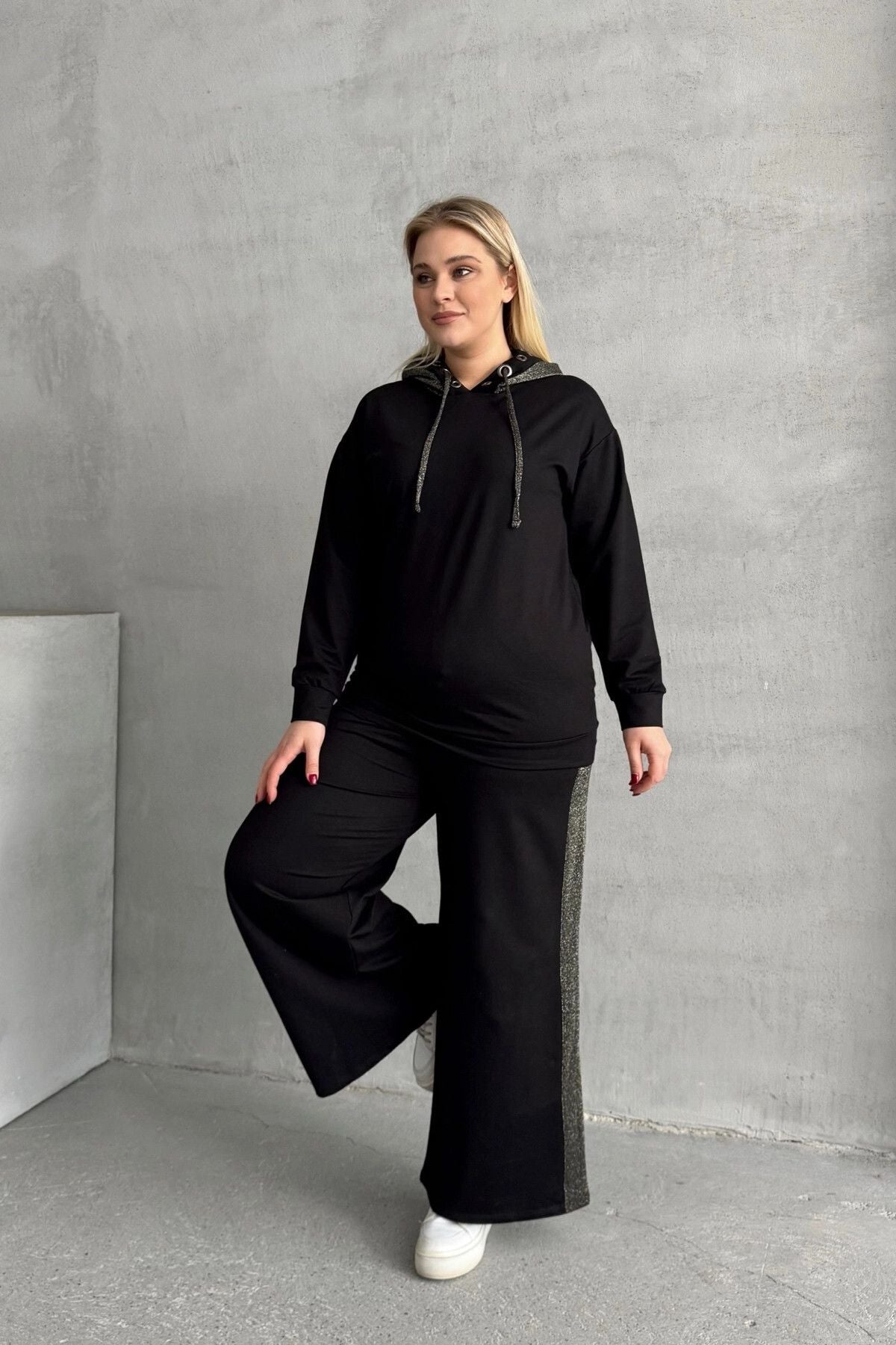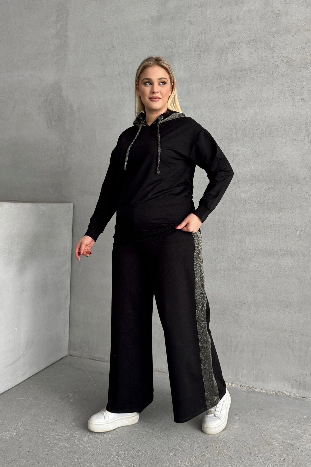 Büyük Beden Bol Paça Yanları Desenli Cepsiz Eşofman Altı 106-74