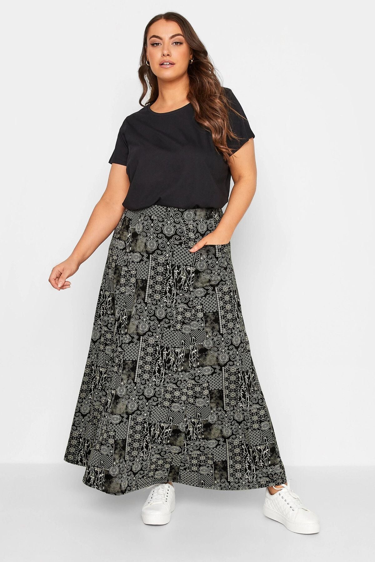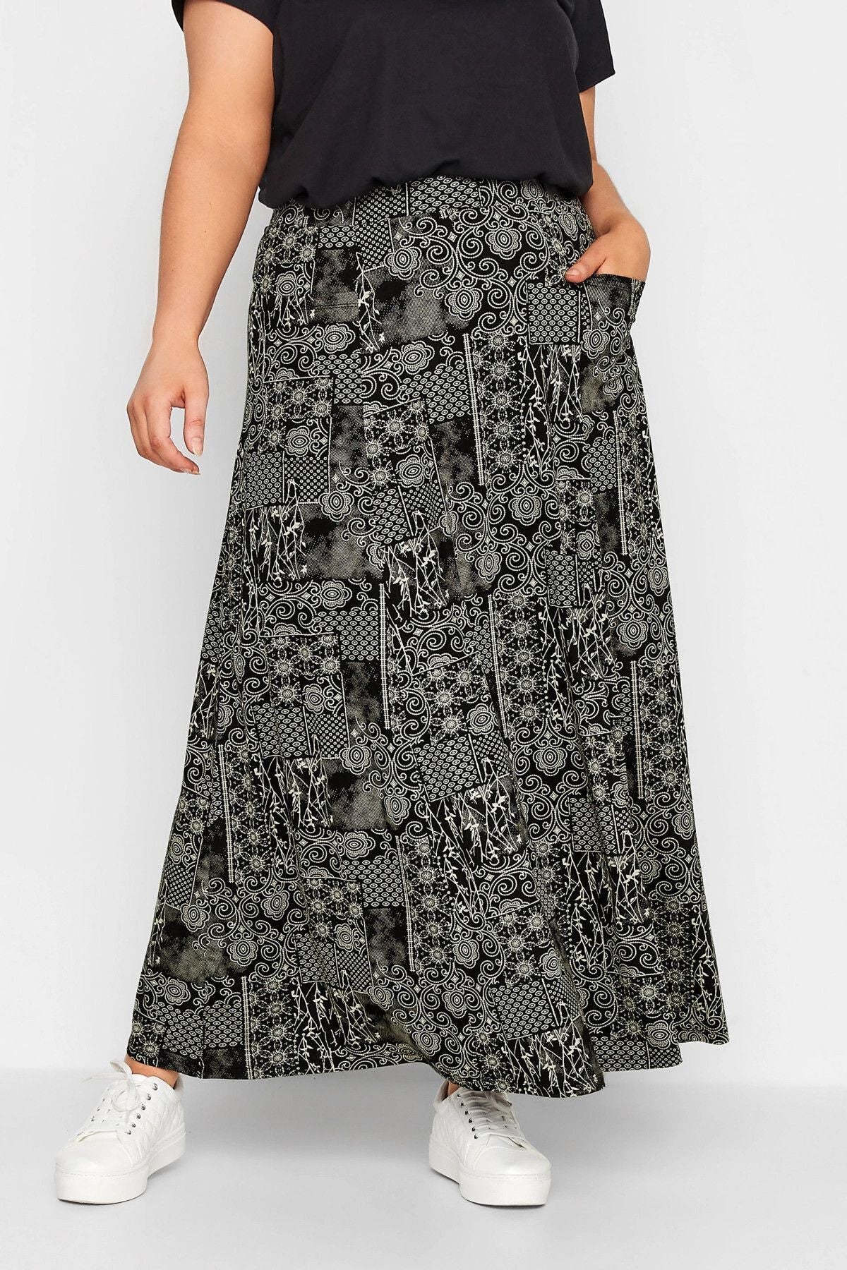 Büyük Beden Cep Detaylı Desenli Beli Lastikli Uzun Kesim Etek 301487