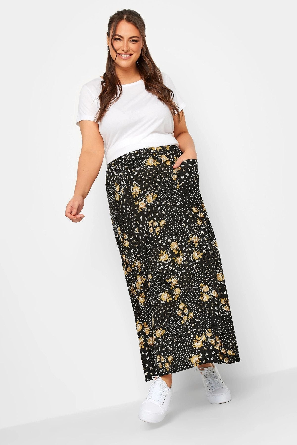 Büyük Beden Cep Detaylı Desenli Beli Lastikli Uzun Kesim Etek 302288