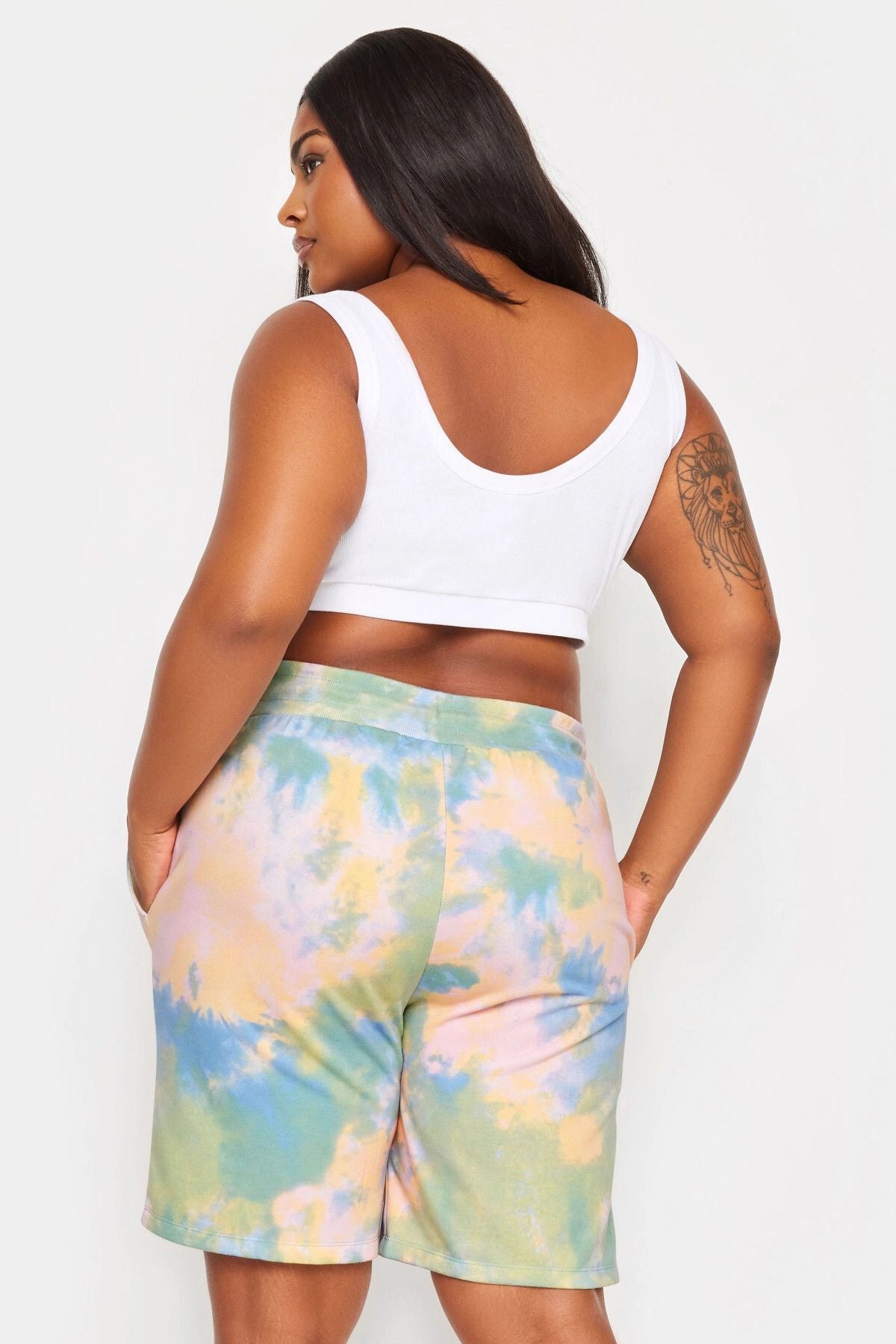 Büyük Beden Cepli Beli Büzgülü Bol Kesim Batik Desenli Şort 303209