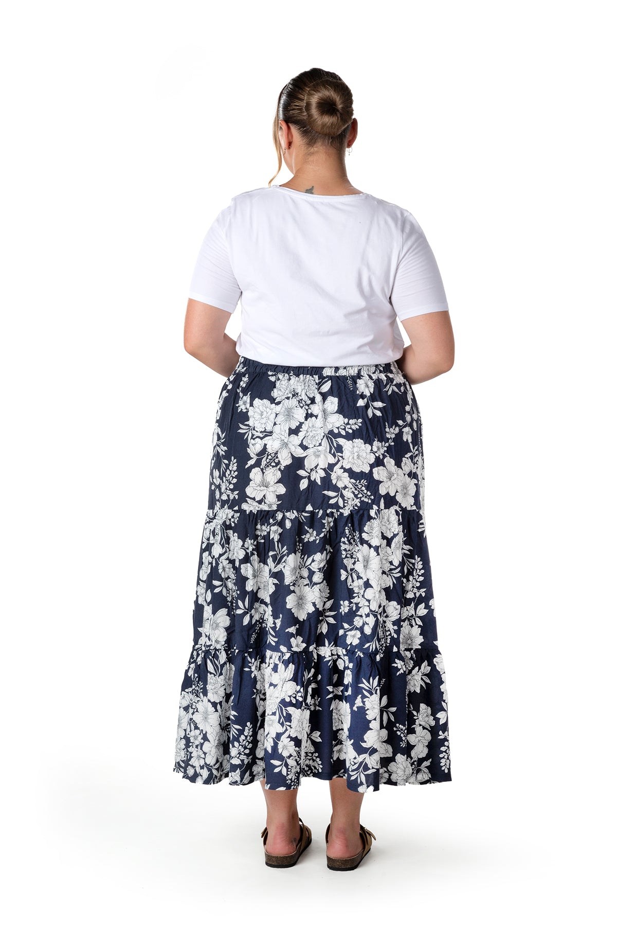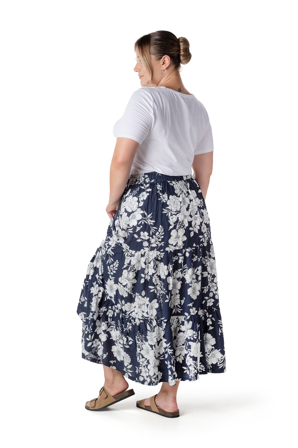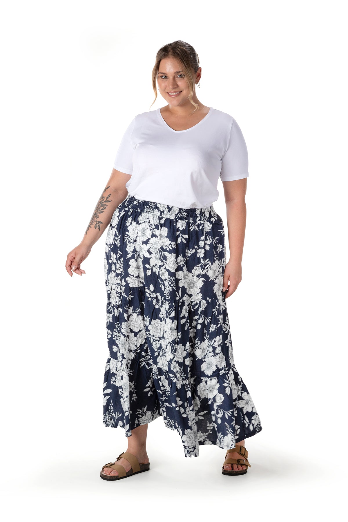 Büyük Beden Çiçek Desenli Beli Listekli Bileli Uzun Etek T-14