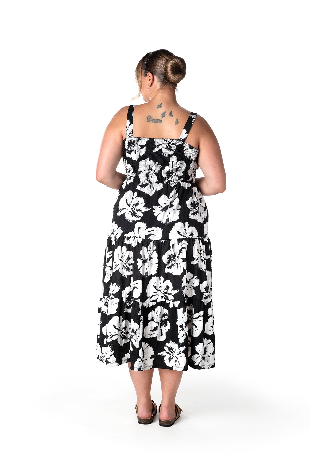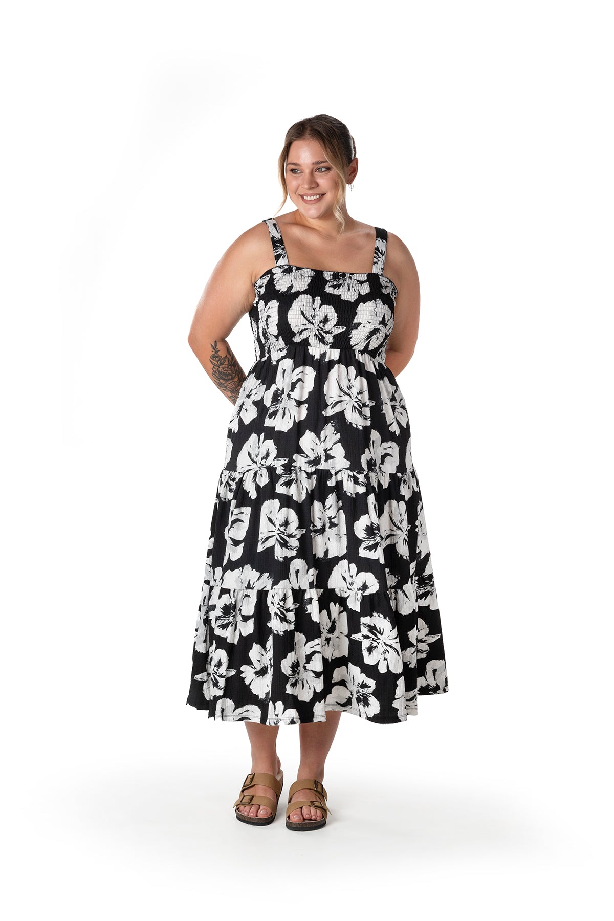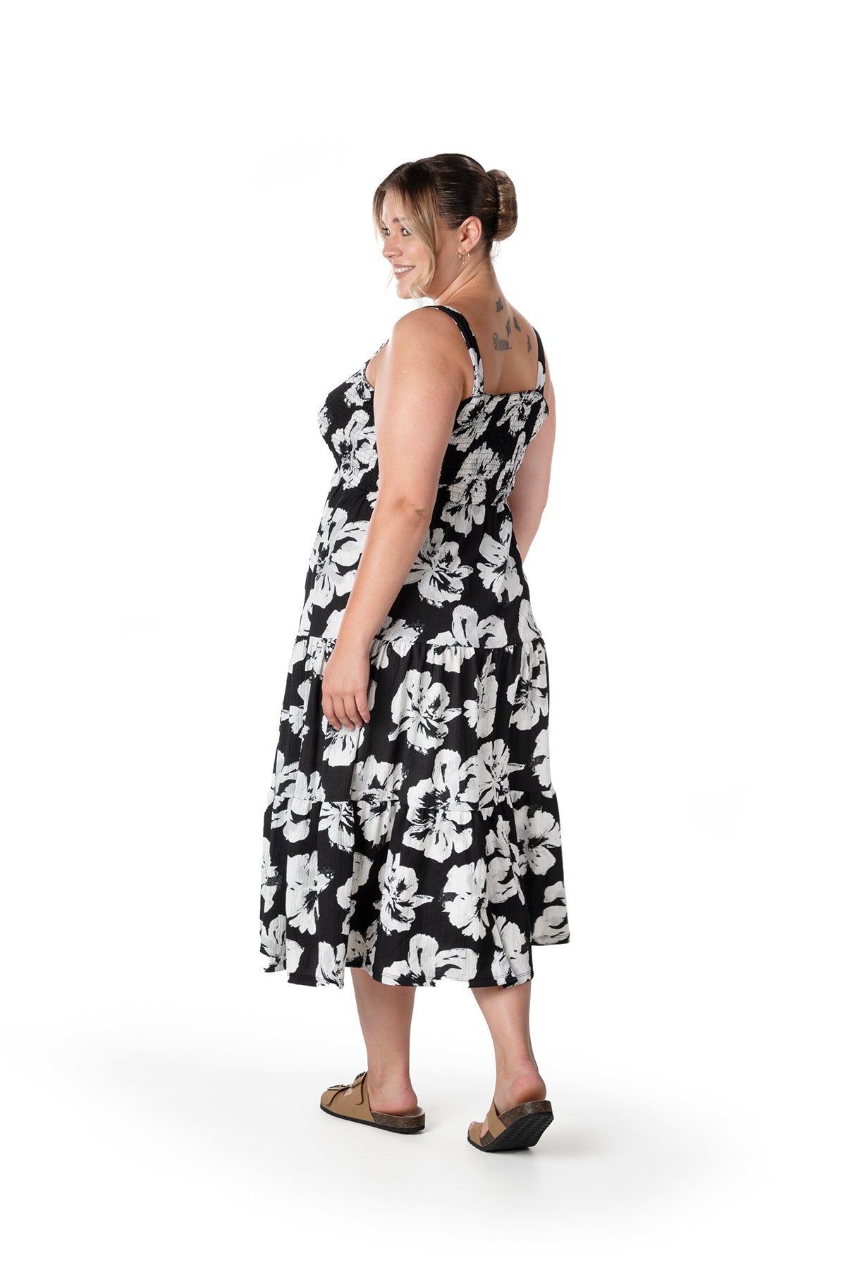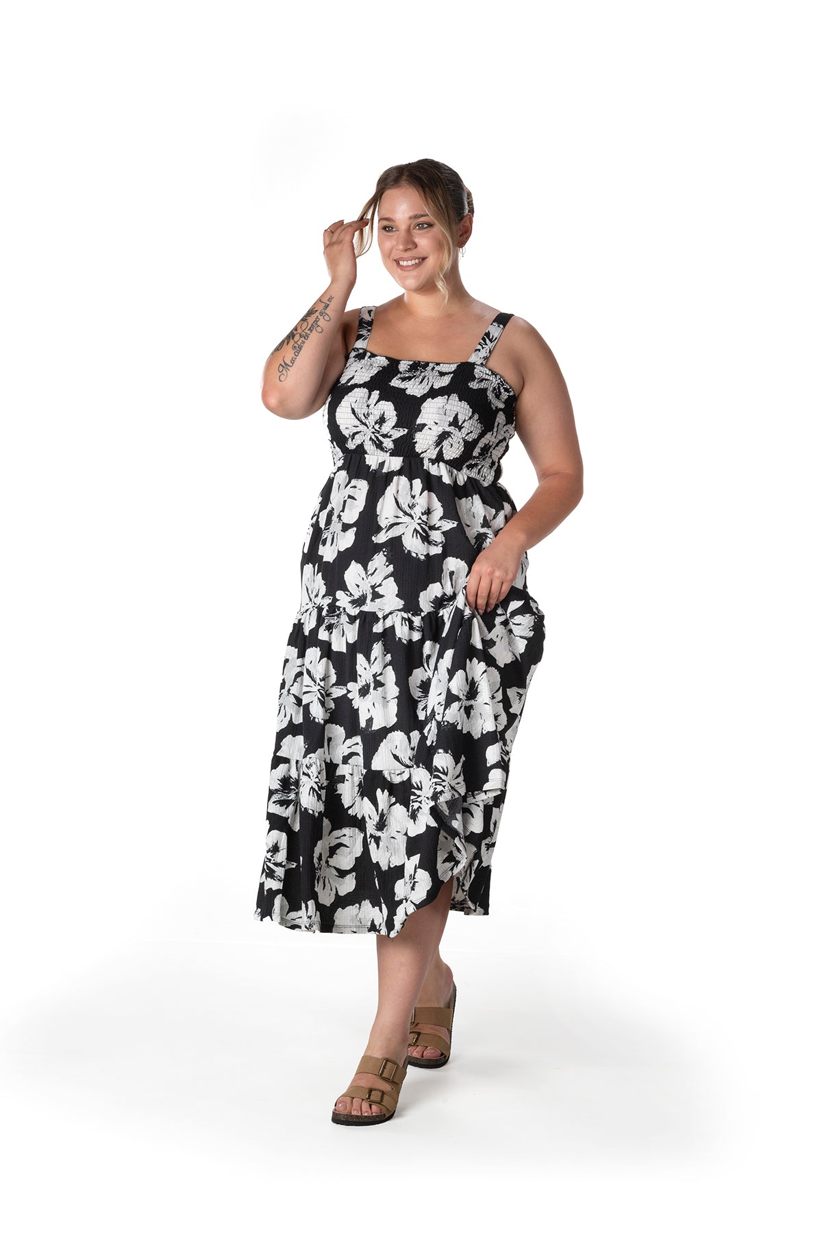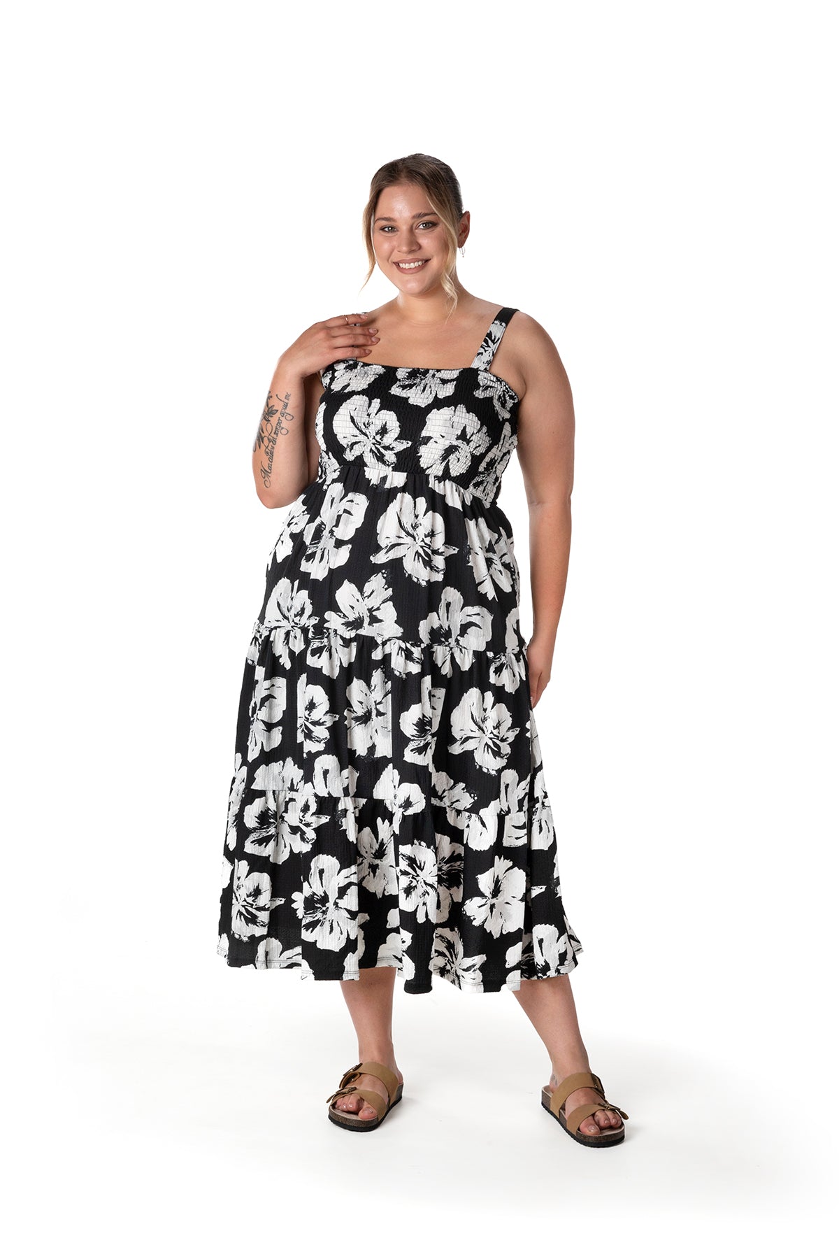 Büyük Beden Çiçek Desenli Kalın Askılı Beli Lastikli Elbise T-79