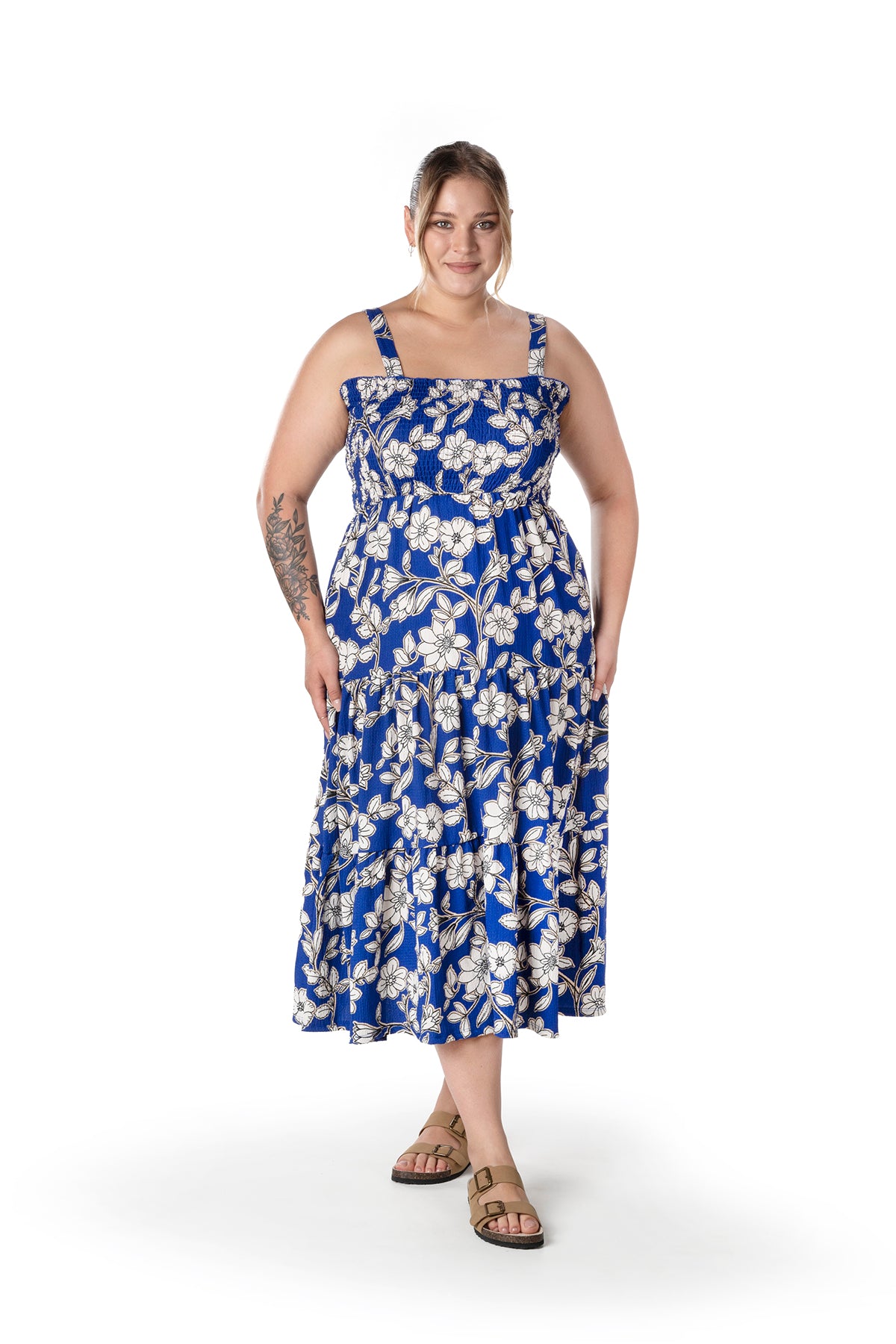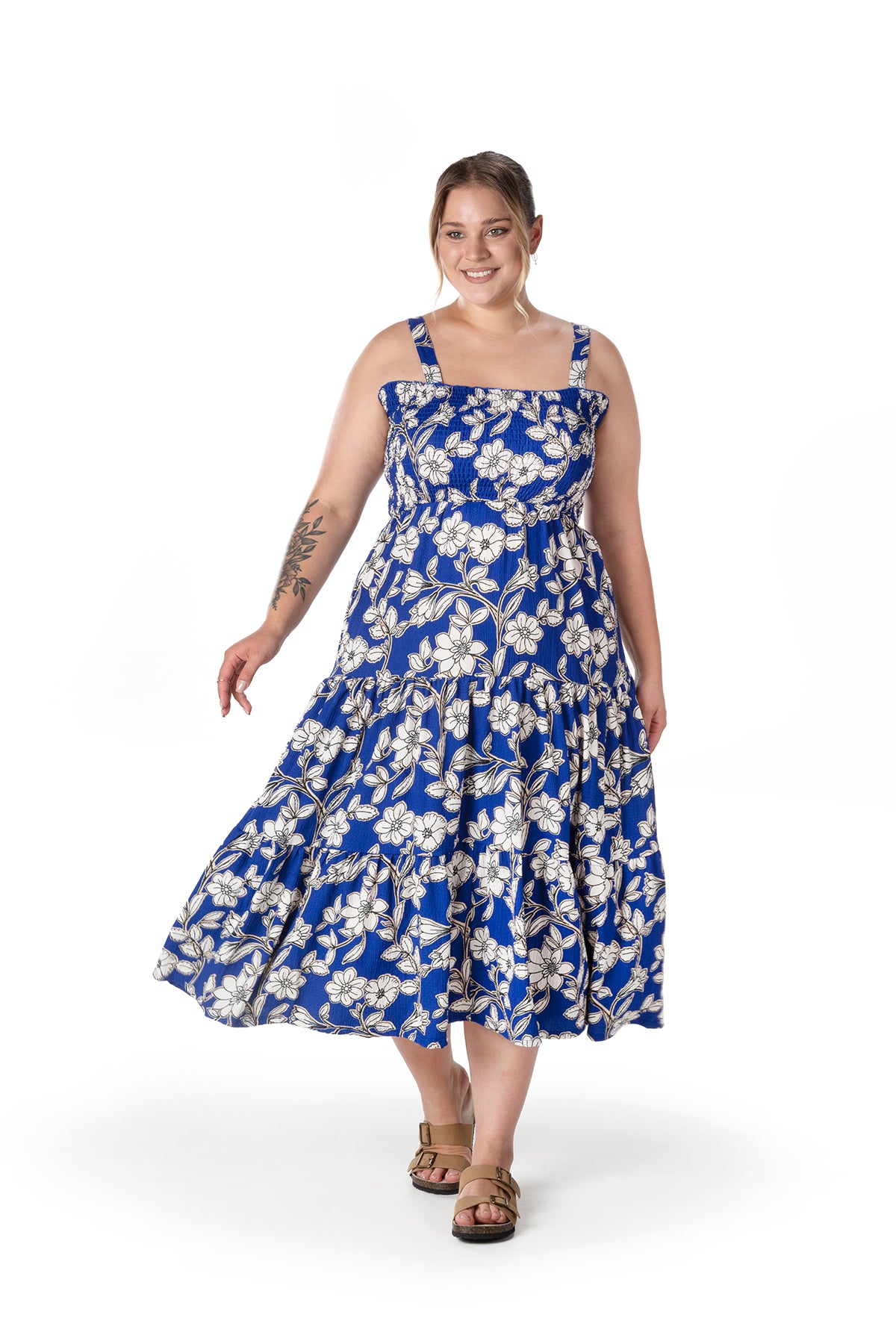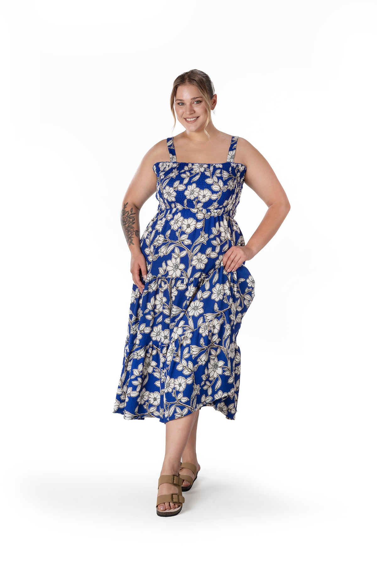 Büyük Beden Çiçek Desenli Kalın Askılı Beli Lastikli Elbise T-80