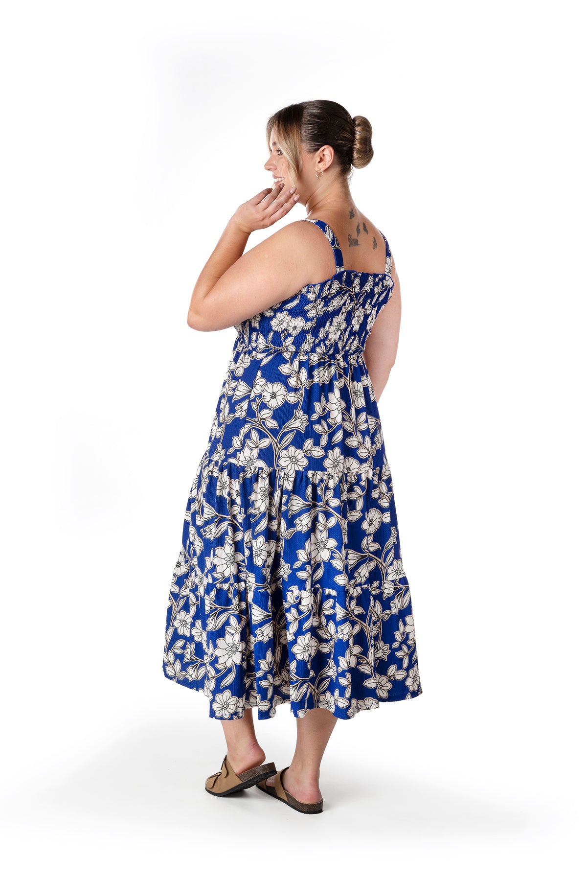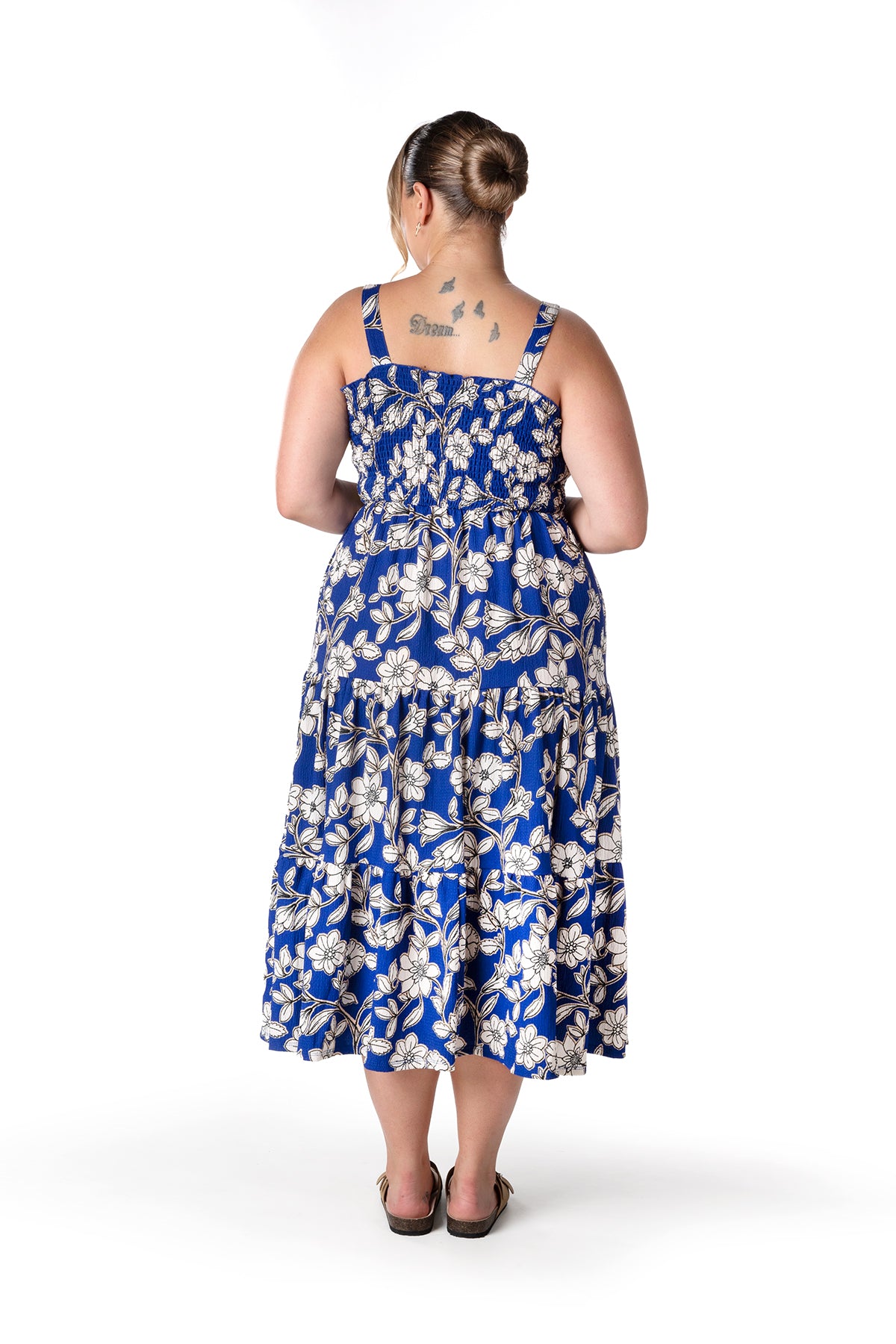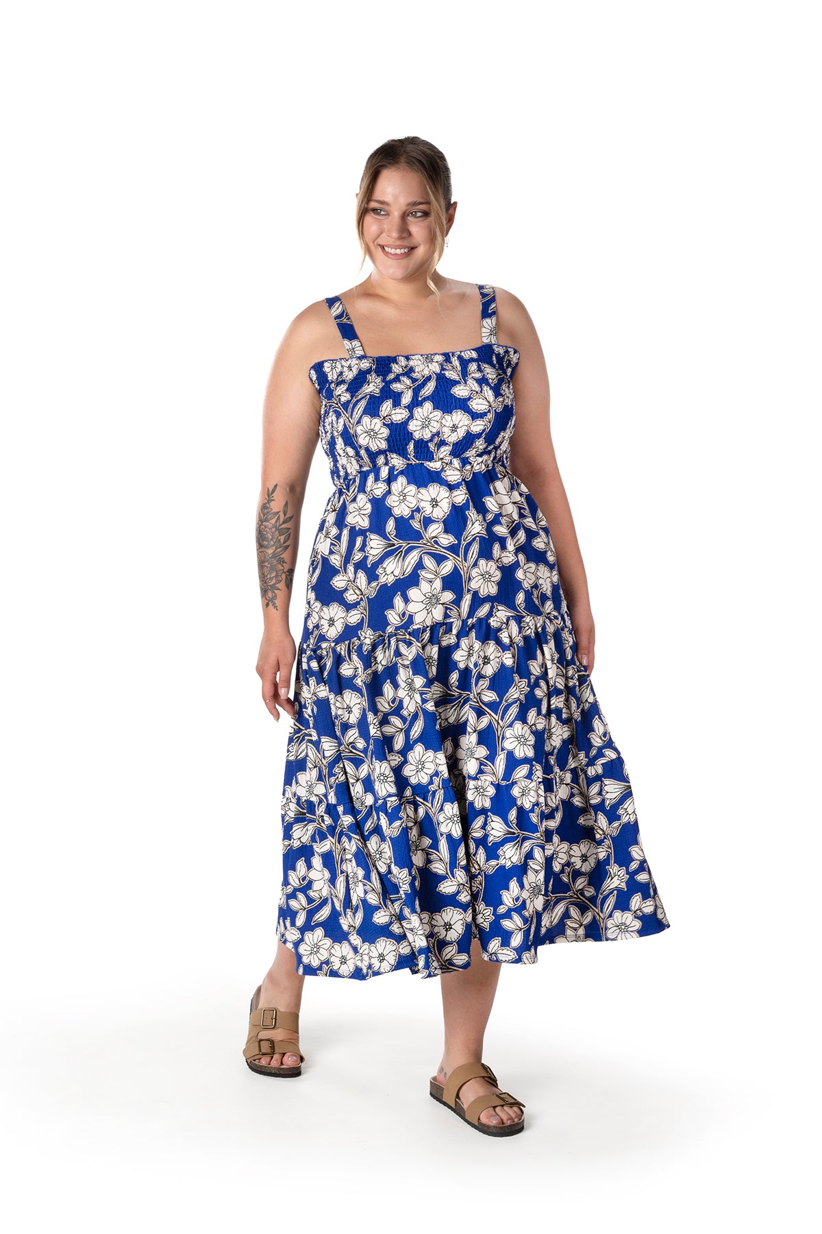 Büyük Beden Çiçek Desenli Kalın Askılı Beli Lastikli Elbise T-80