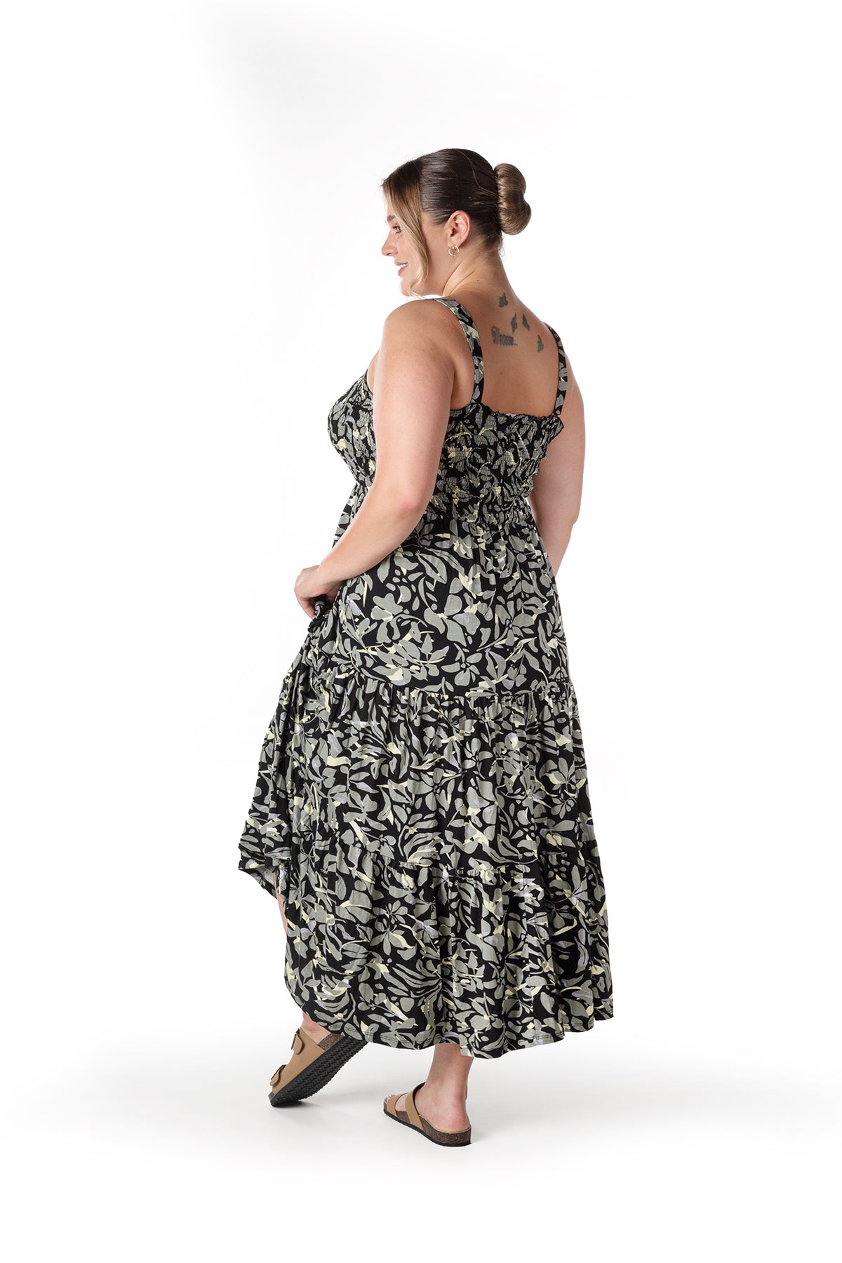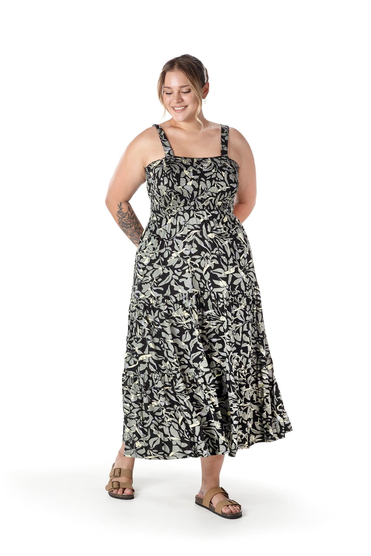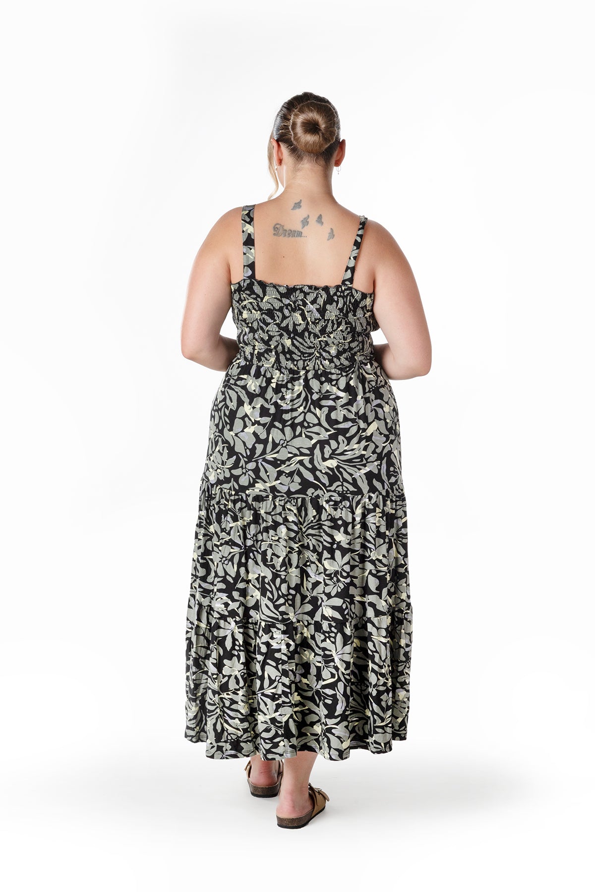 Büyük Beden Çiçek Desenli Kalın Askılı Beli Lastikli Elbise T-81