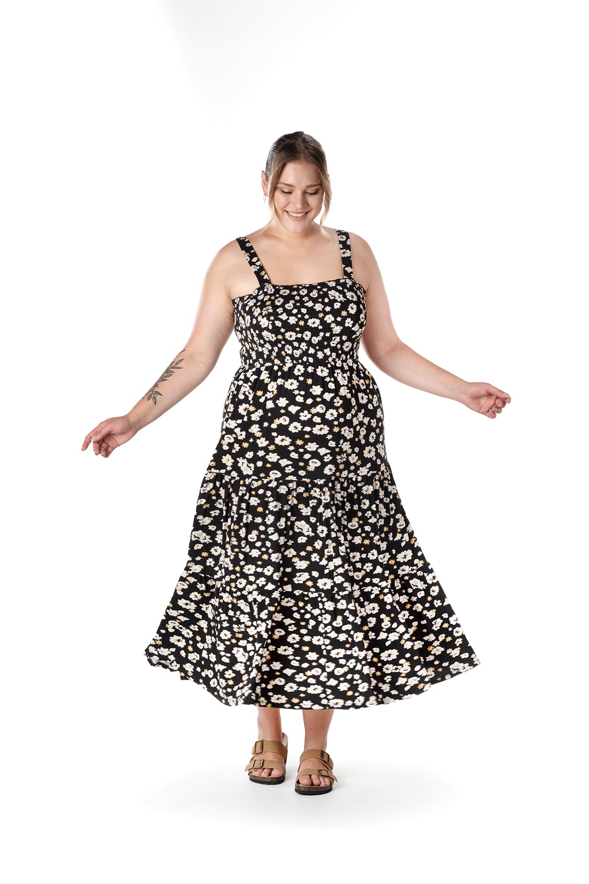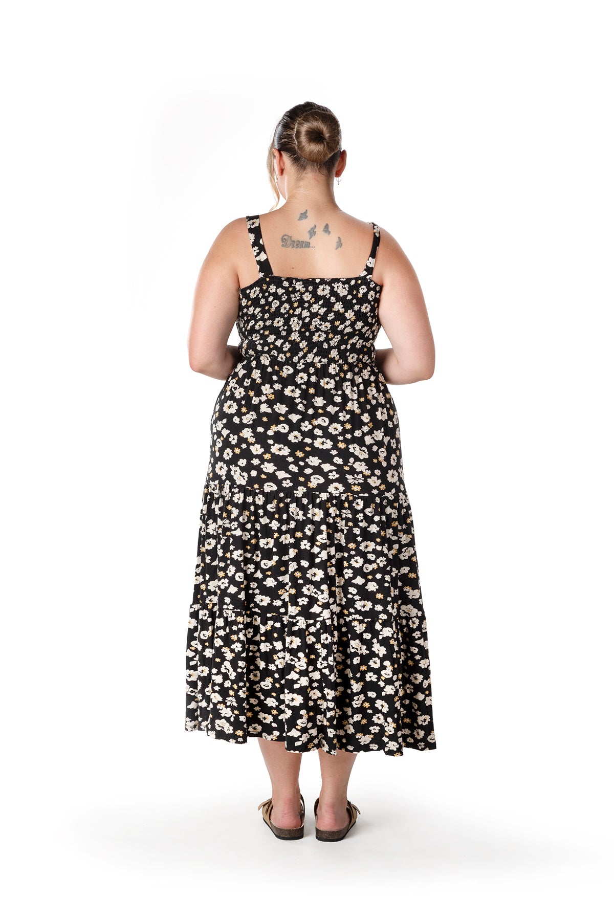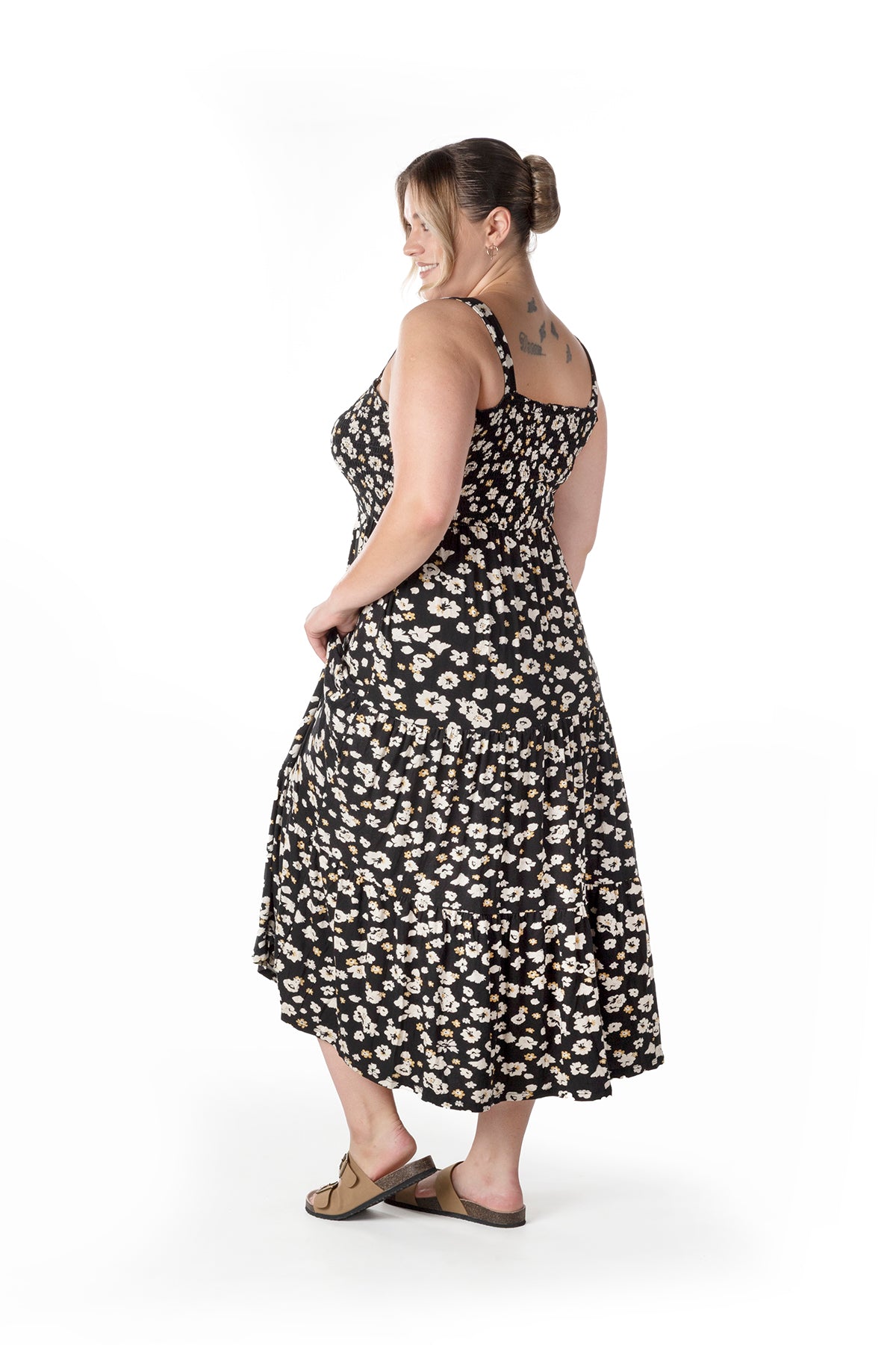 Büyük Beden Çiçek Desenli Kalın Askılı Beli Lastikli Elbise T-83