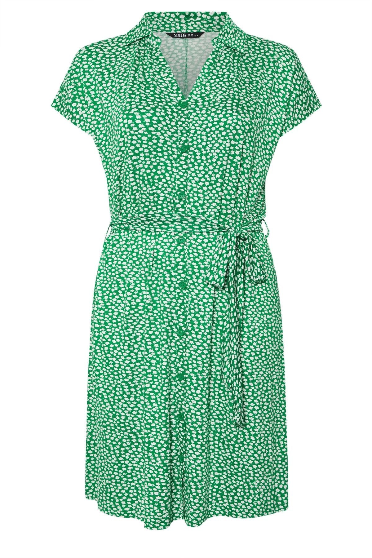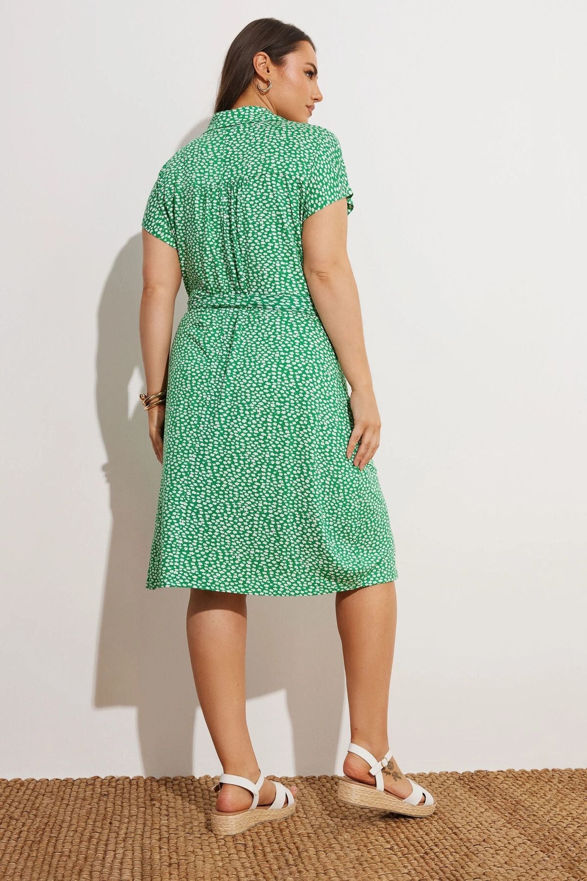 Büyük Beden Çiçek Desenli Midi Boy Beli Kuşaklı Düğmeli Elbise 303329