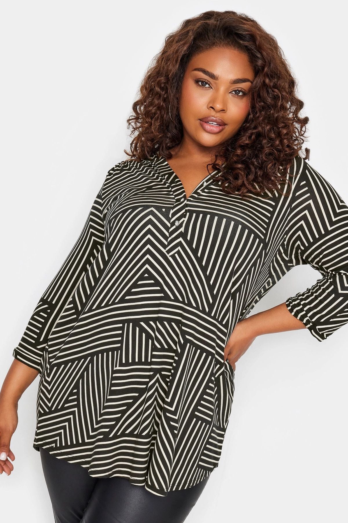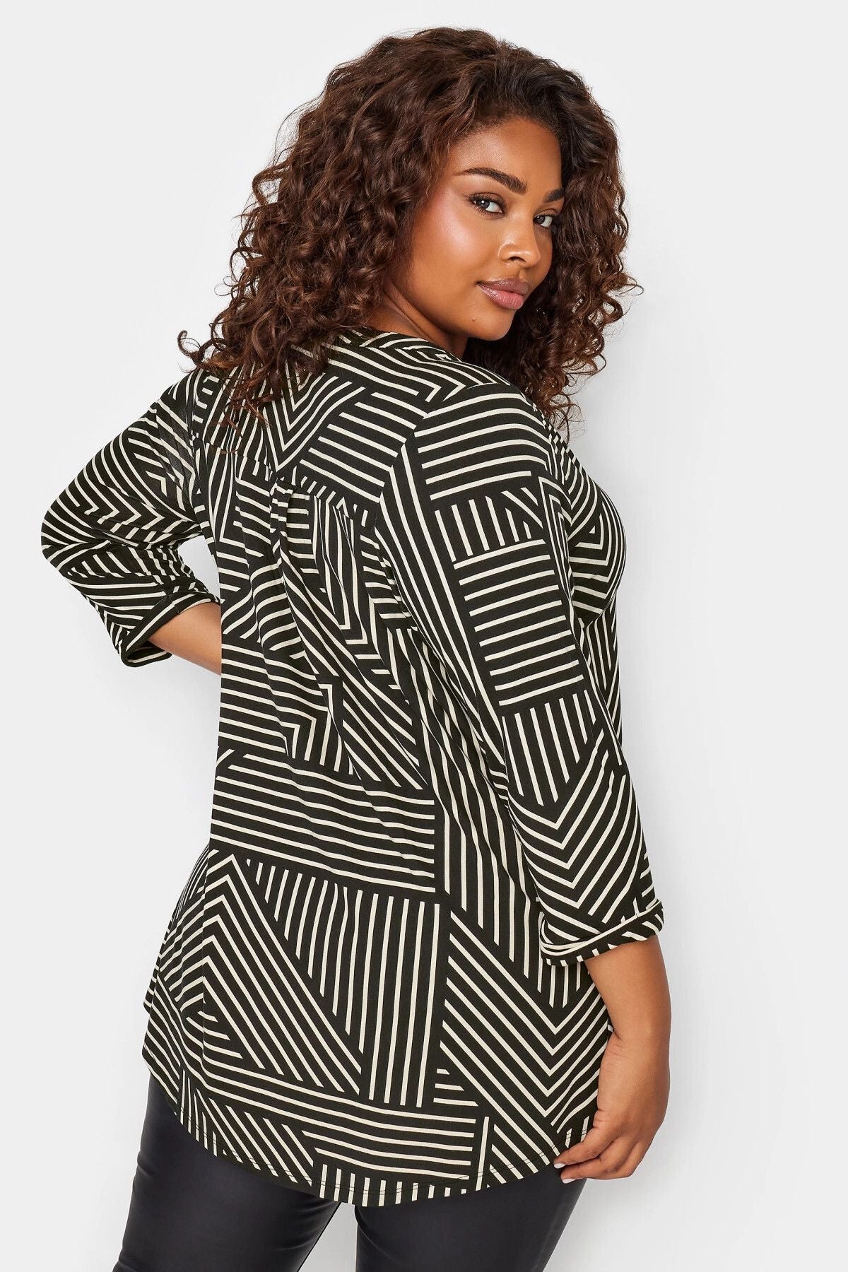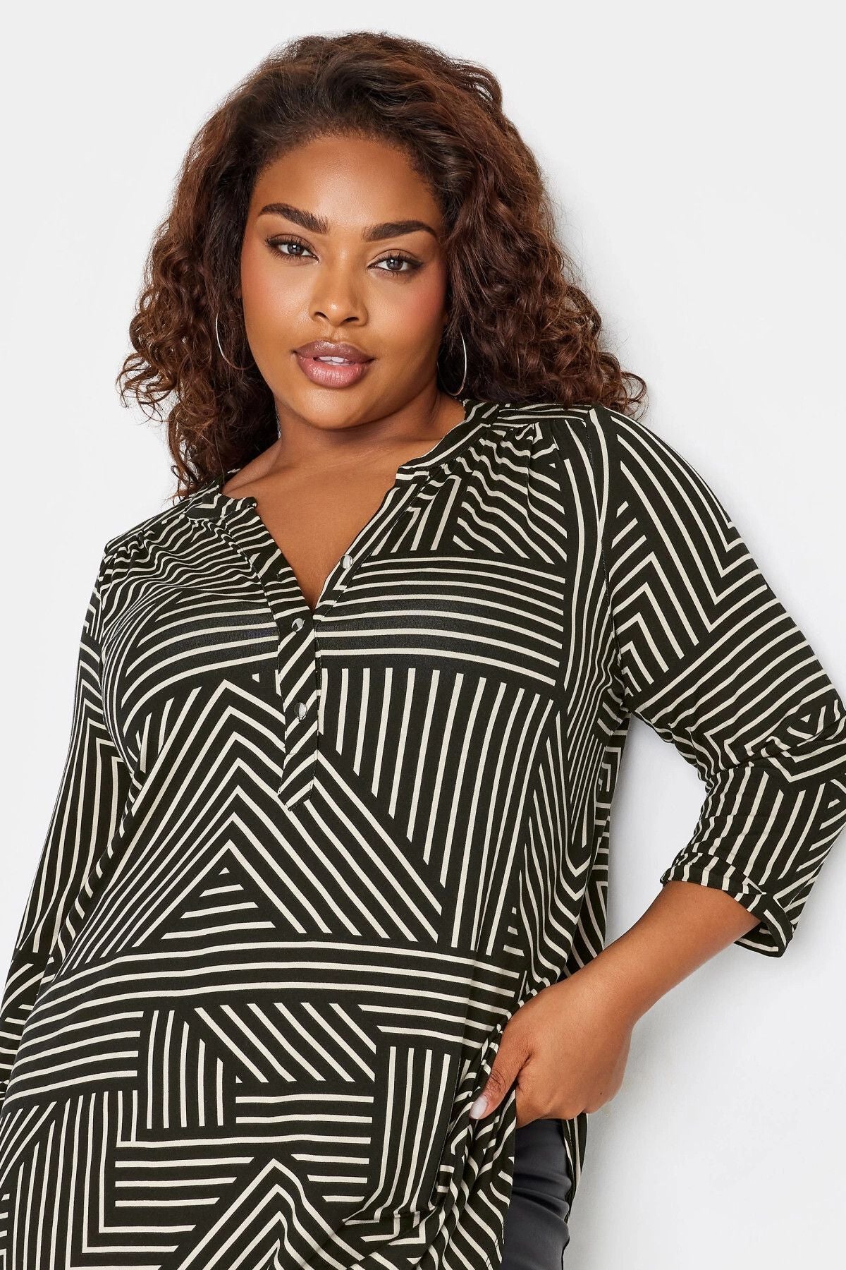 Büyük Beden Çizgi Desenli Gömlek Görünümlü Yarım Kollu Yakası Düğmeli Bluz 321235