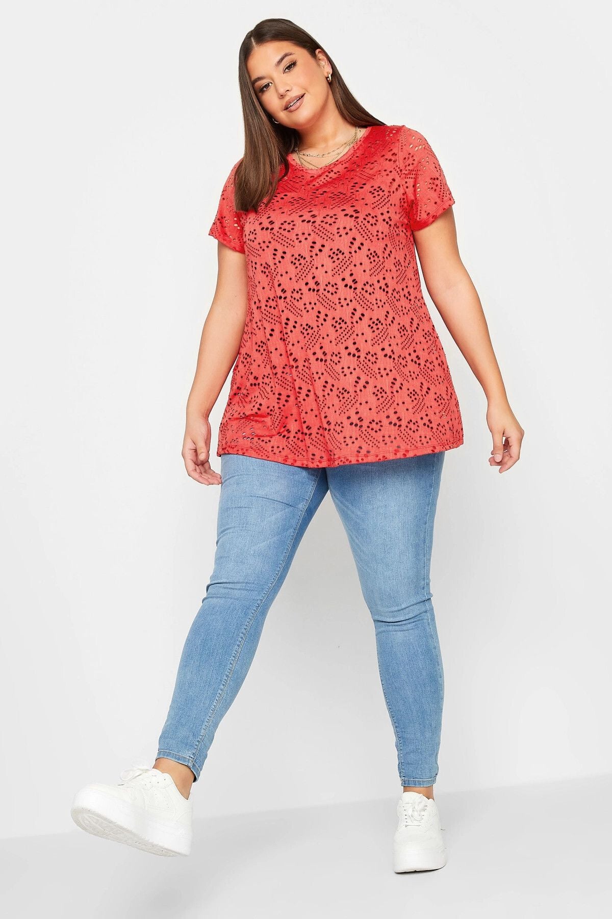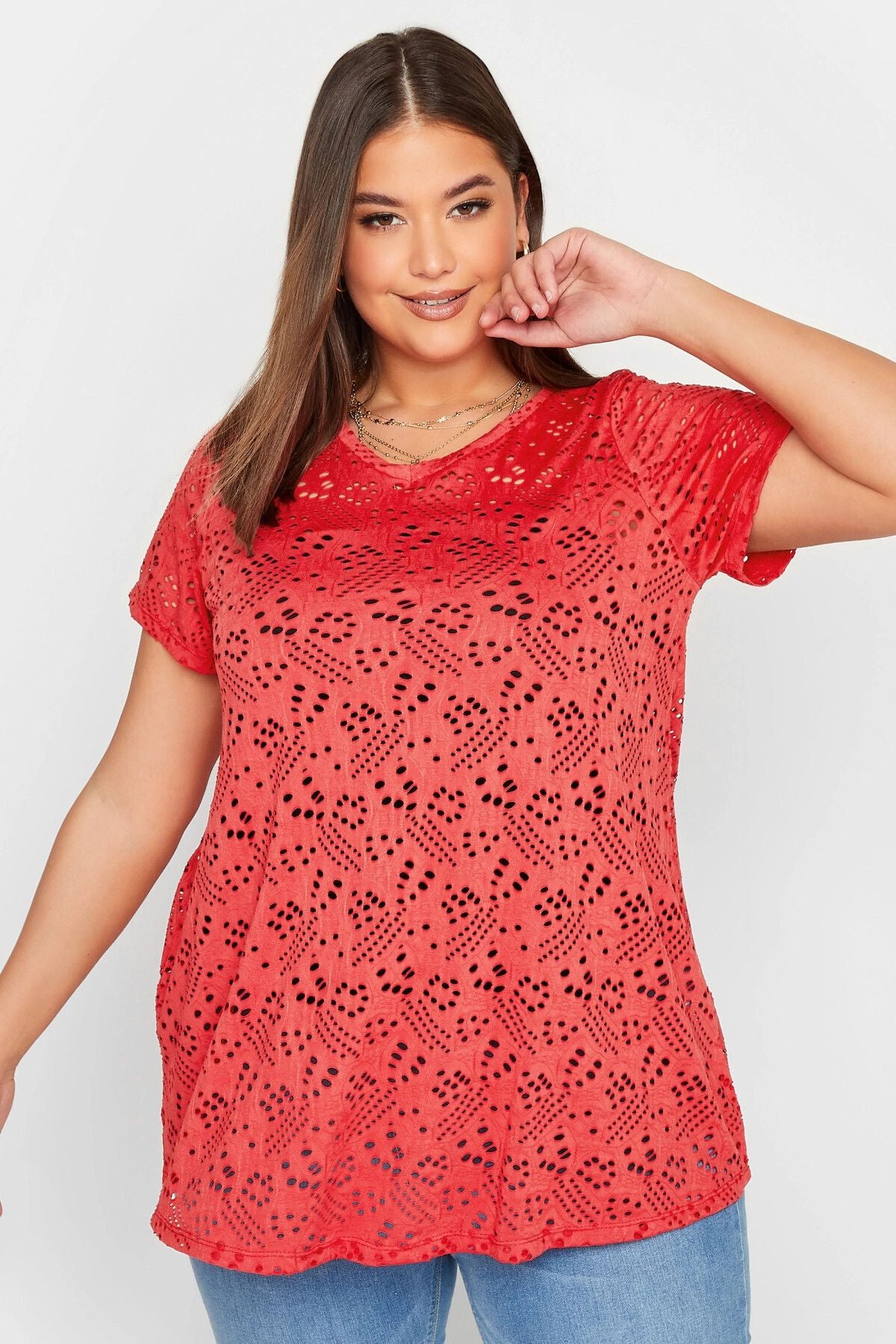 Büyük Beden Dantel Detaylı V Yaka Astarsız Bluz 321027