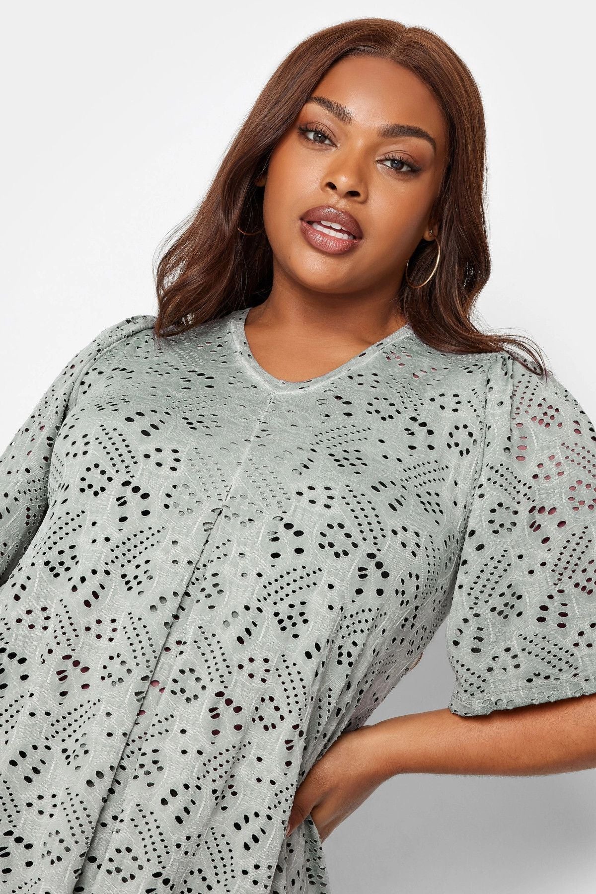 Büyük Beden Dantel Detaylı V Yaka Yarım Kollu Astarsız Bluz 302488