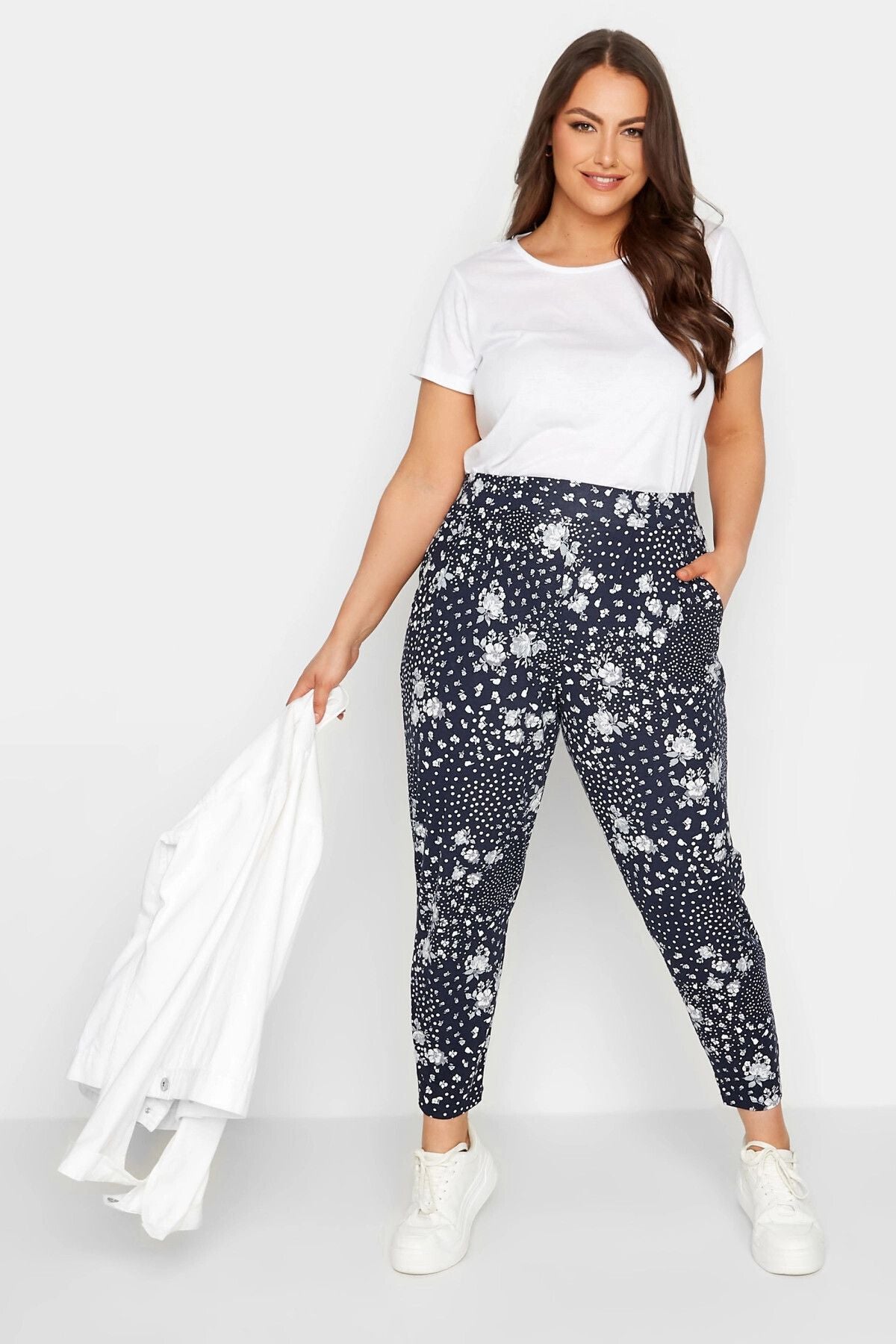 Büyük Beden Dar Paça Desenli Cepli Havuç Kesim Likralı Pantolon 143316