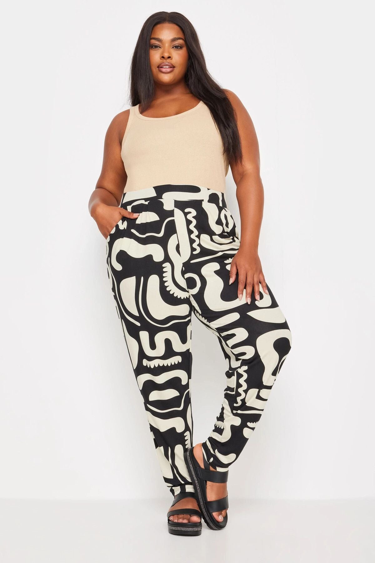 Büyük Beden Dar Paça Desenli Cepli Havuç Kesim Likralı Pantolon 143748