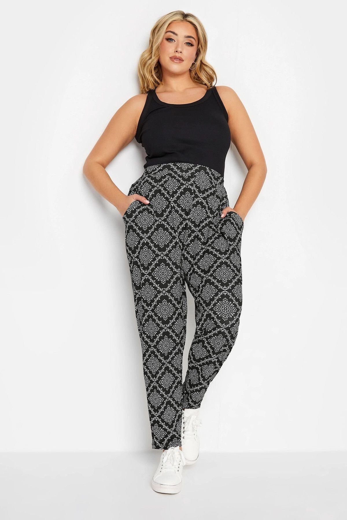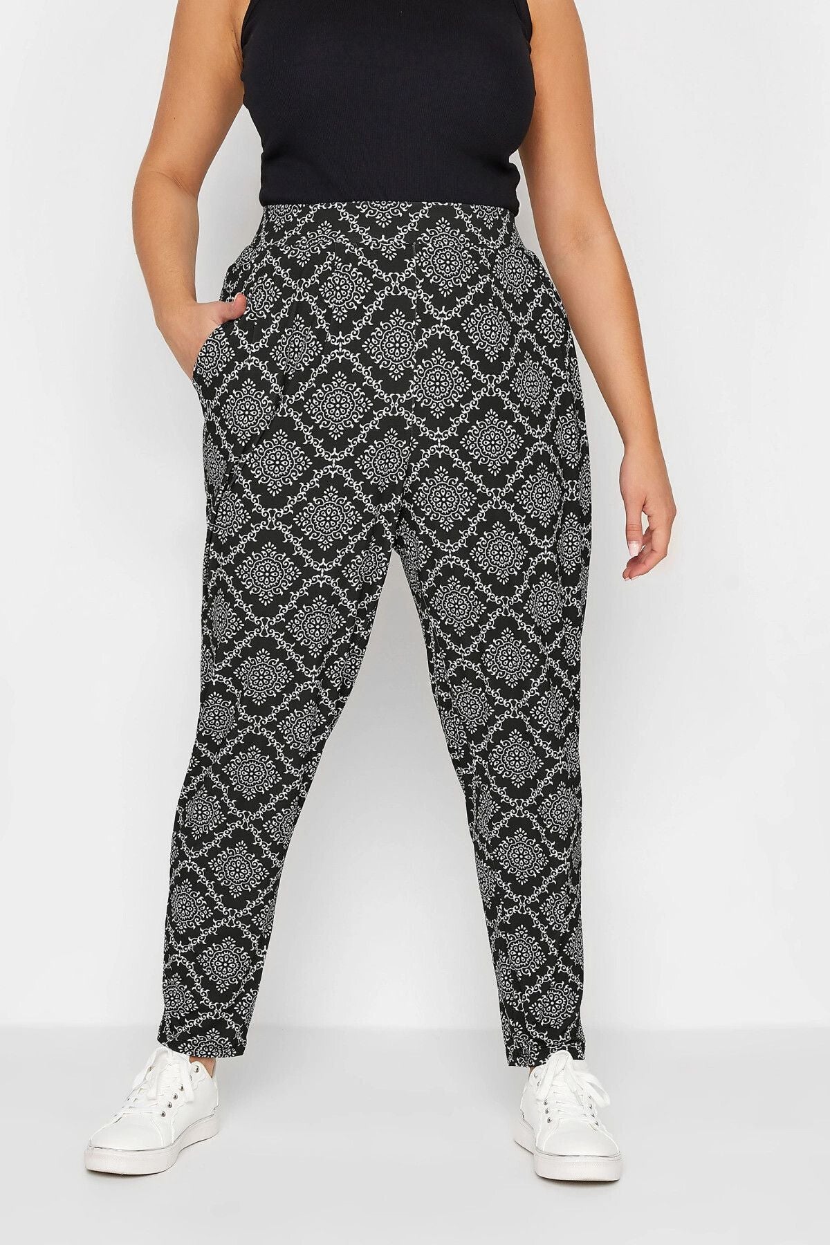 Büyük Beden Dar Paça Desenli Cepli Havuç Kesim Likralı Pantolon 302004