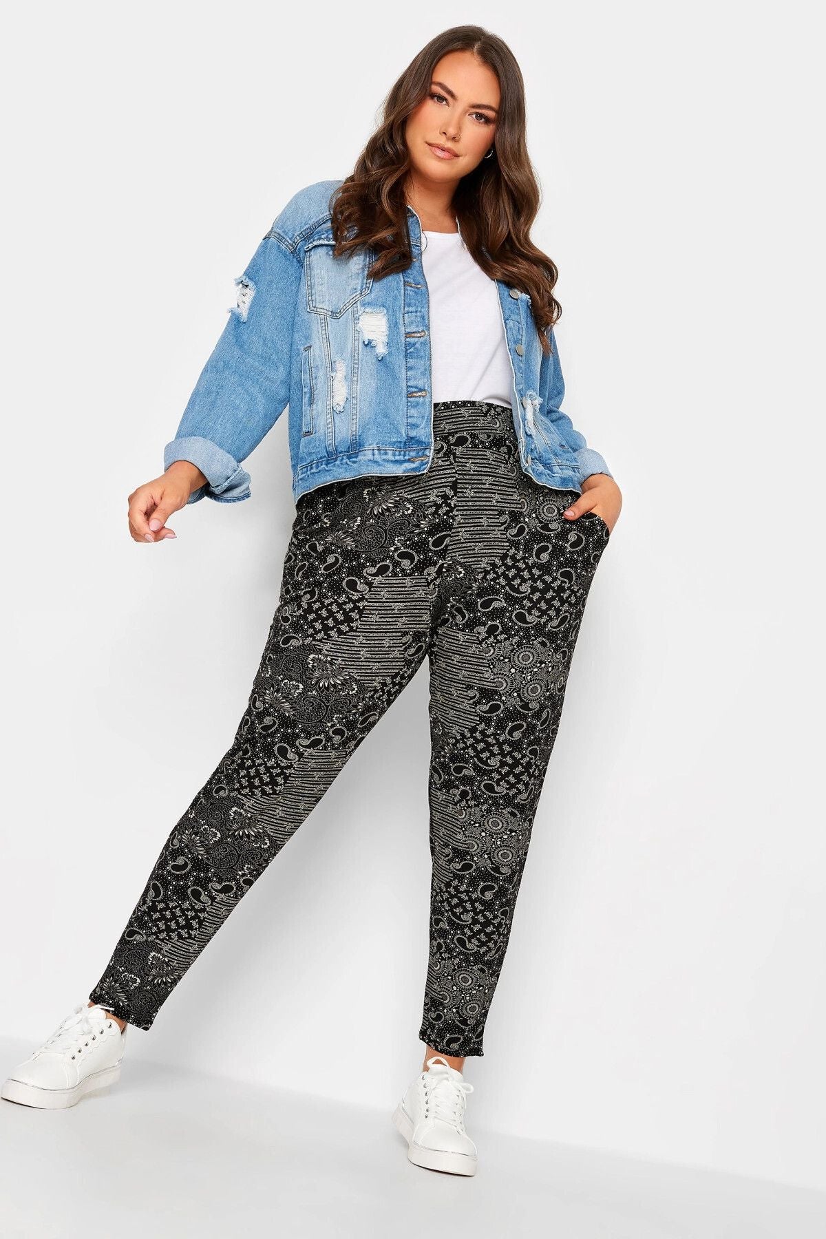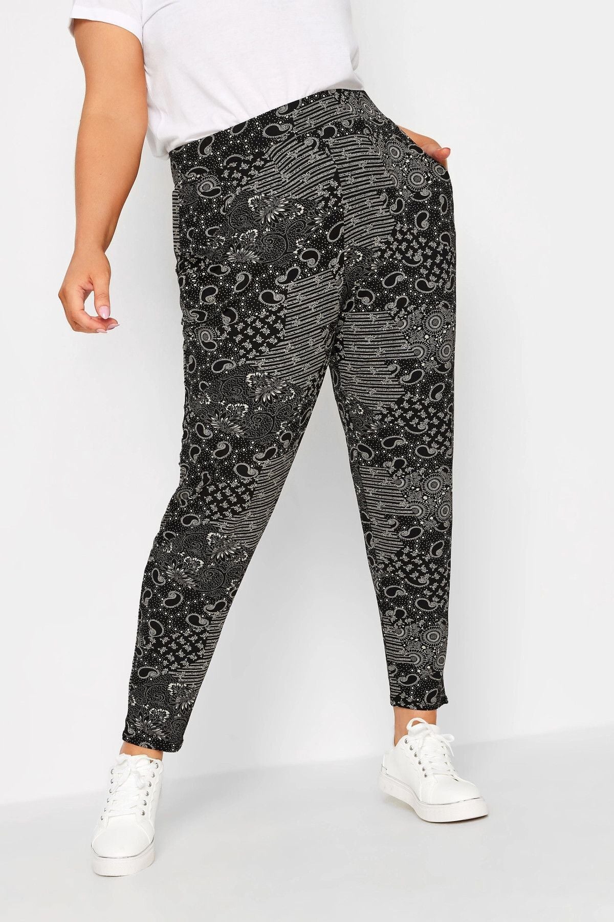 Büyük Beden Dar Paça Desenli Cepli Havuç Kesim Likralı Pantolon 302493