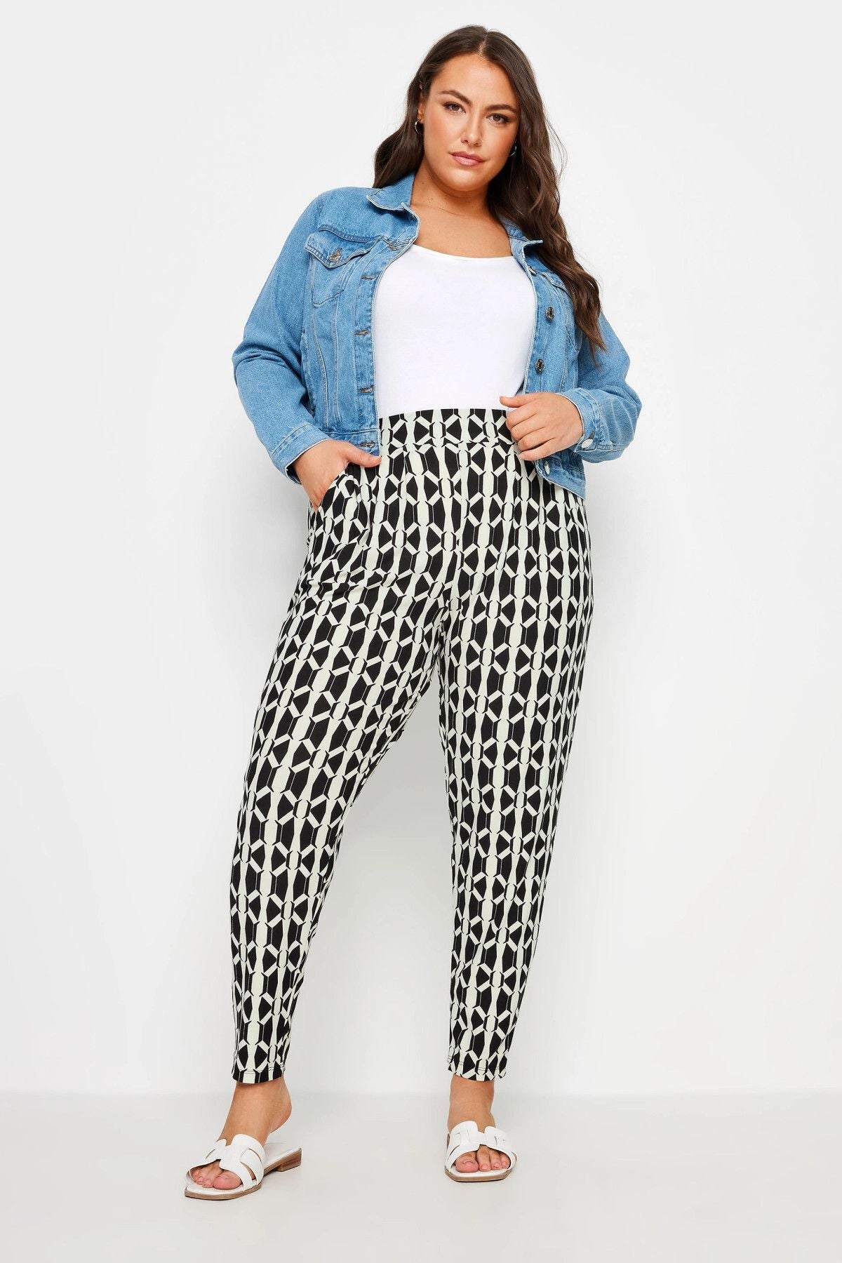Büyük Beden Dar Paça Desenli Cepli Havuç Kesim Likralı Pantolon 302561