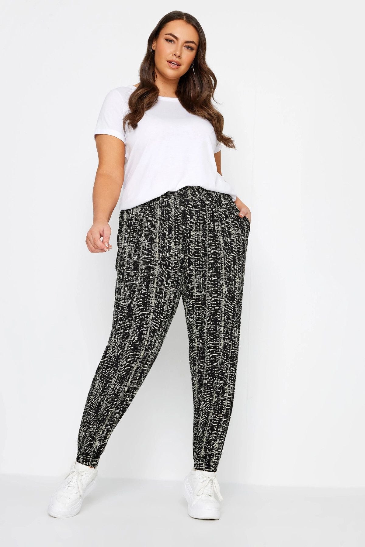 Büyük Beden Dar Paça Desenli Cepli Havuç Kesim Likralı Pantolon 302944