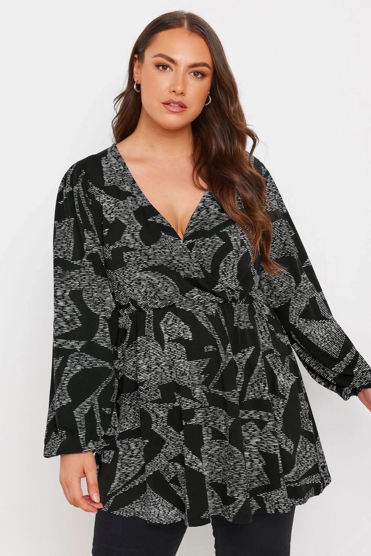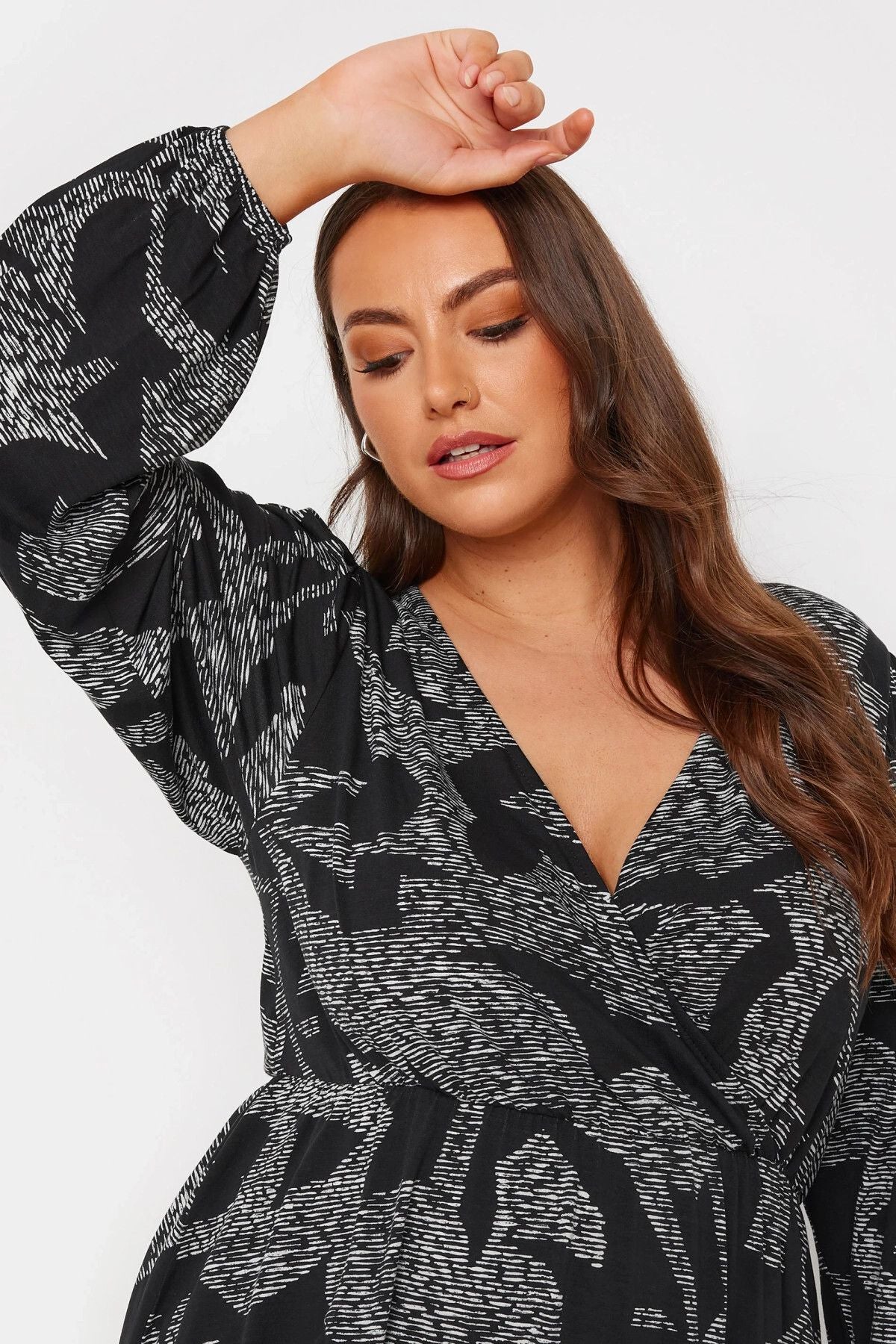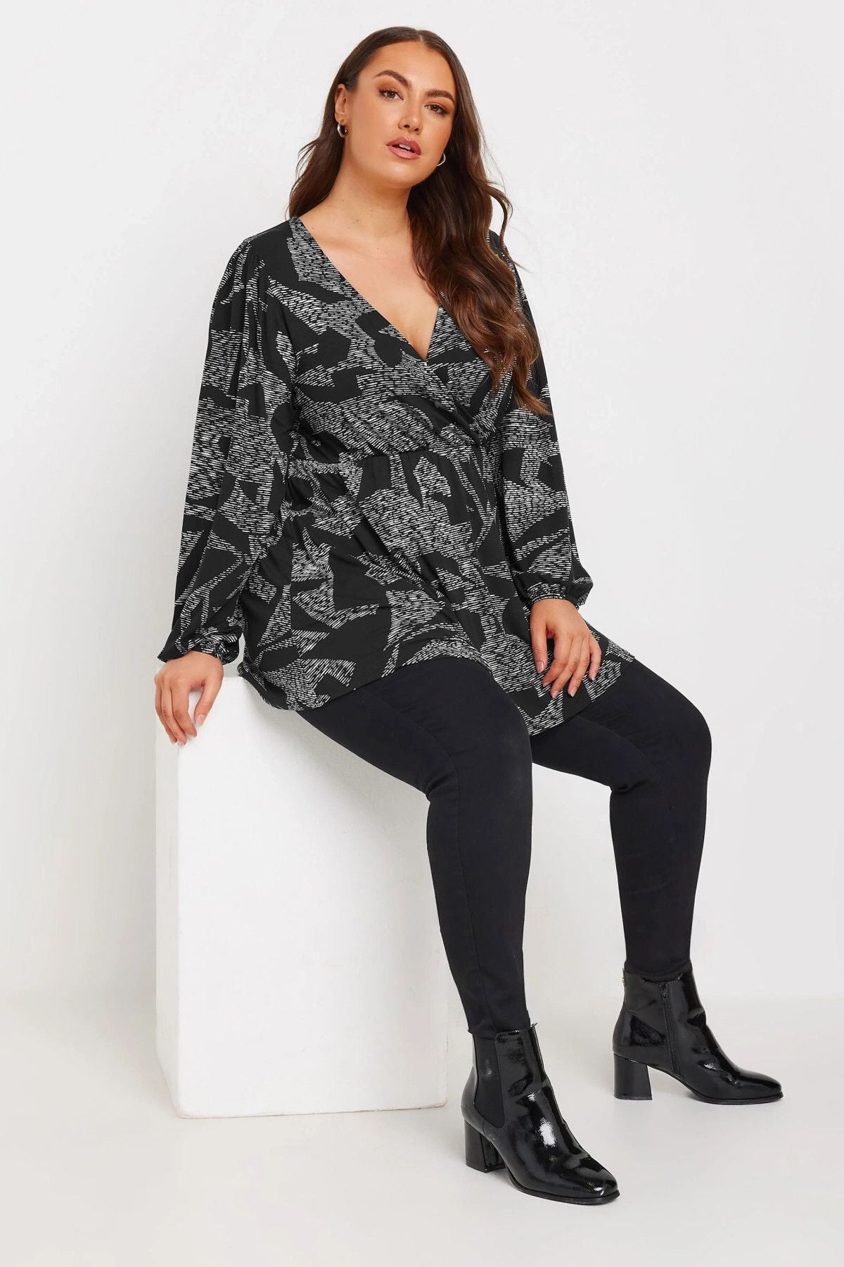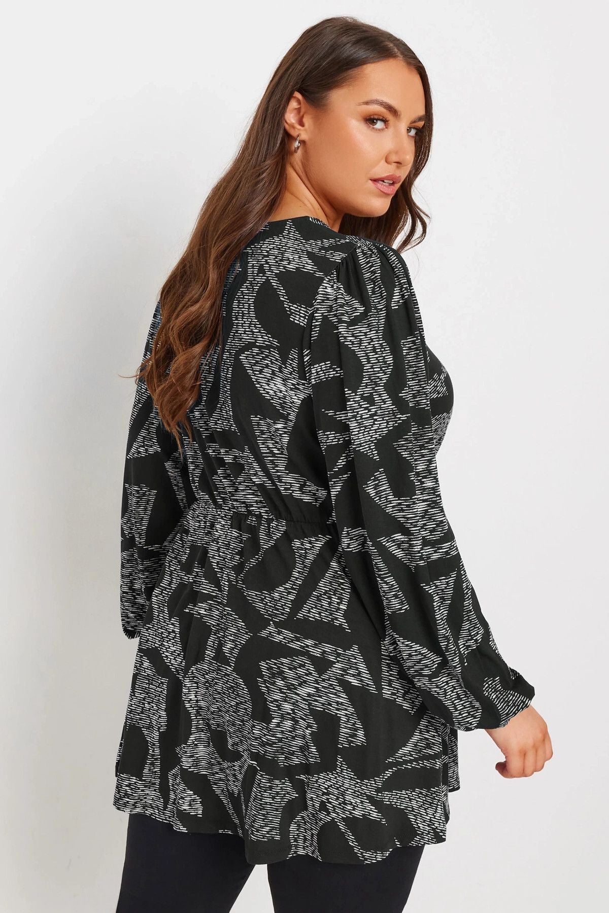 Büyük Beden Derin V Yaka Beli Lastikli Uzun Kollu Bluz 322100