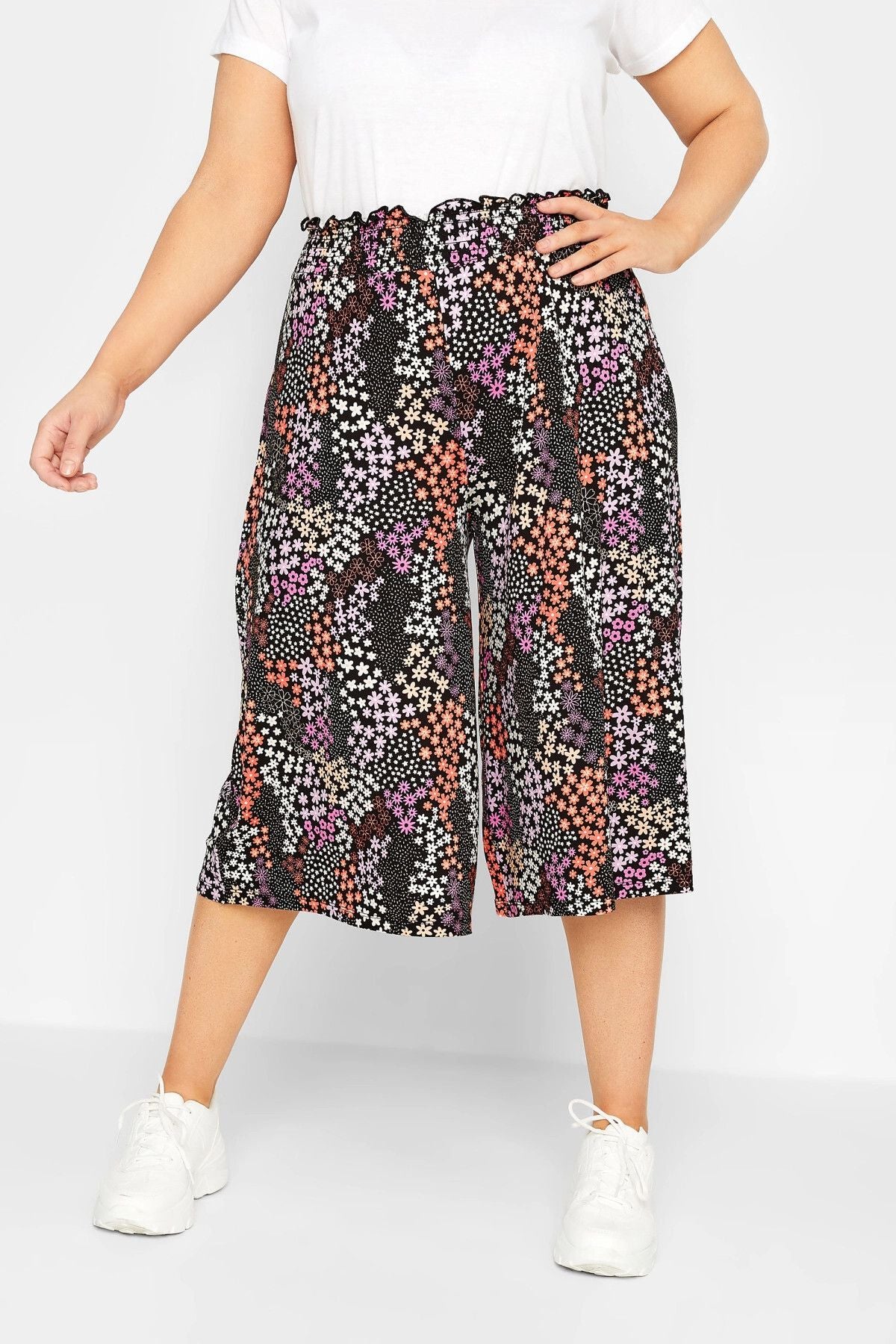 Büyük Beden Desenli Bol Kesim Cepli Likralı Kapri Pantolon 144777