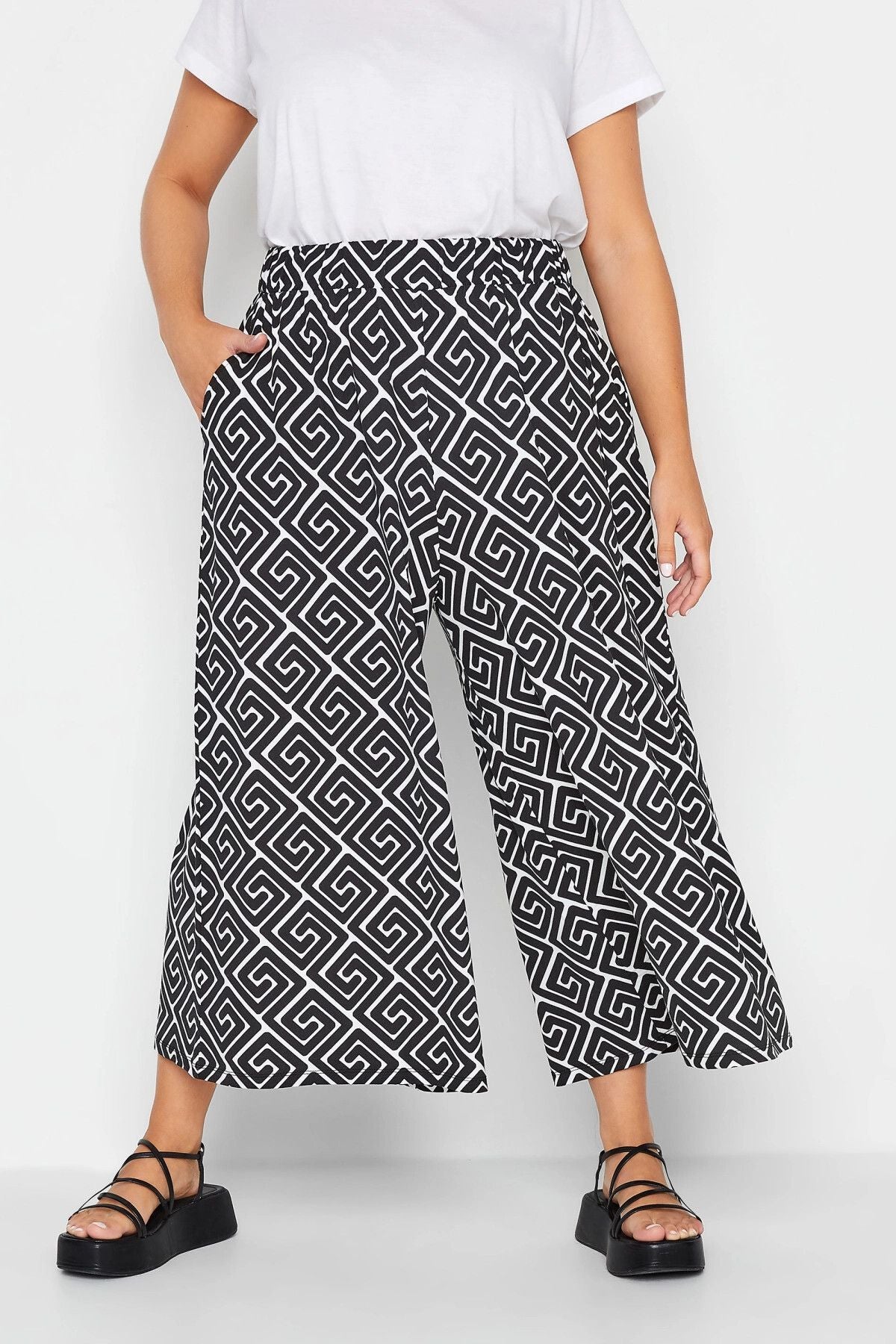 Büyük Beden Desenli Bol Kesim Cepli Likralı Kapri Pantolon 144846