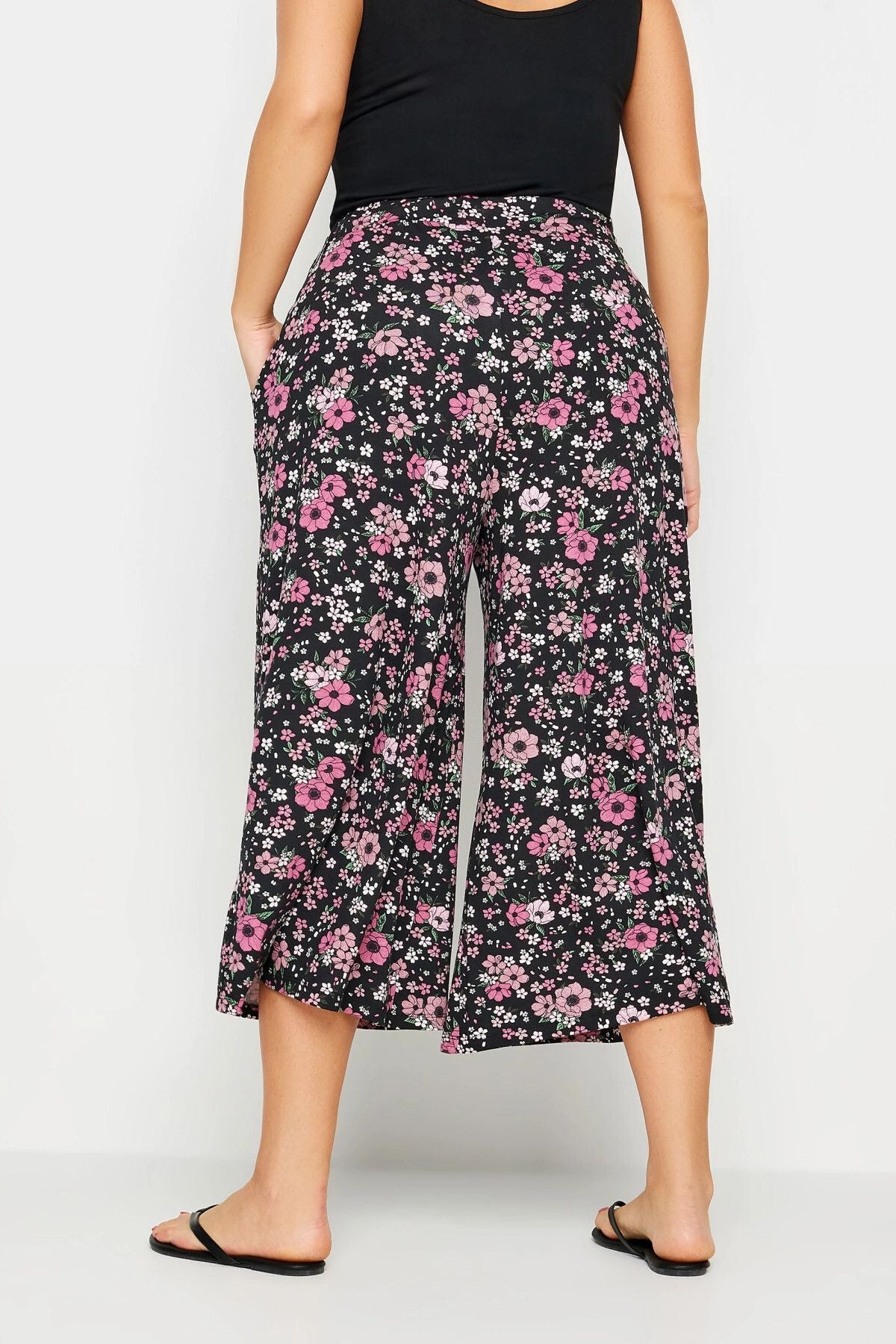 Büyük Beden Desenli Bol Kesim Cepli Likralı Kapri Pantolon 145046