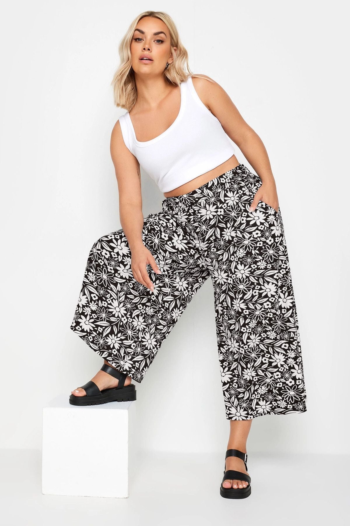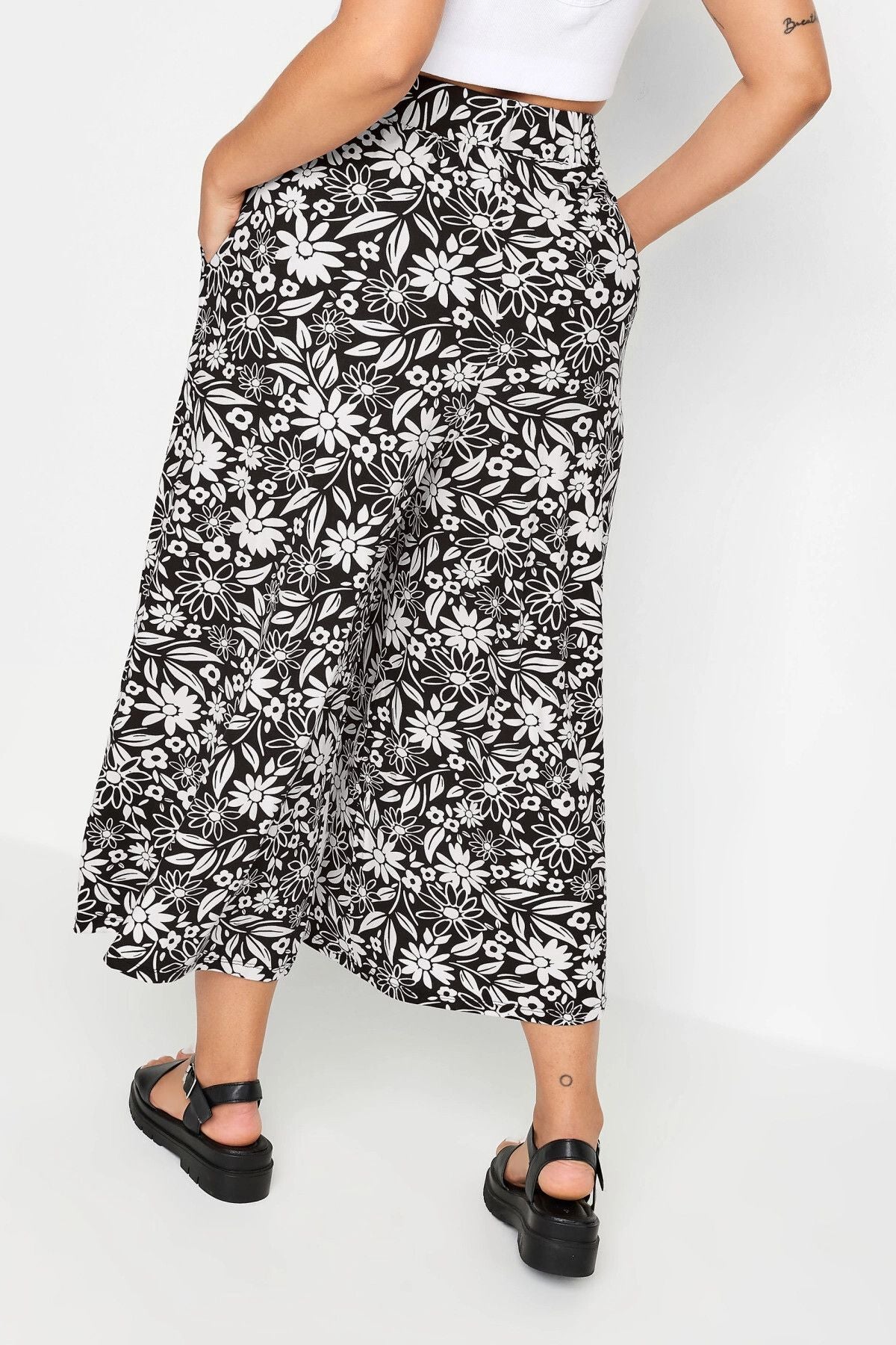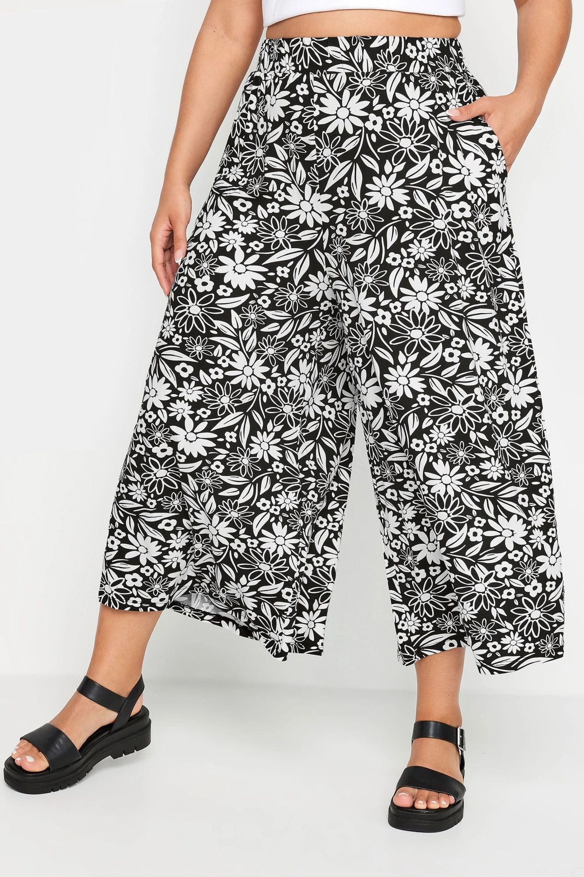 Büyük Beden Desenli Bol Kesim Cepli Likralı Kapri Pantolon 145092