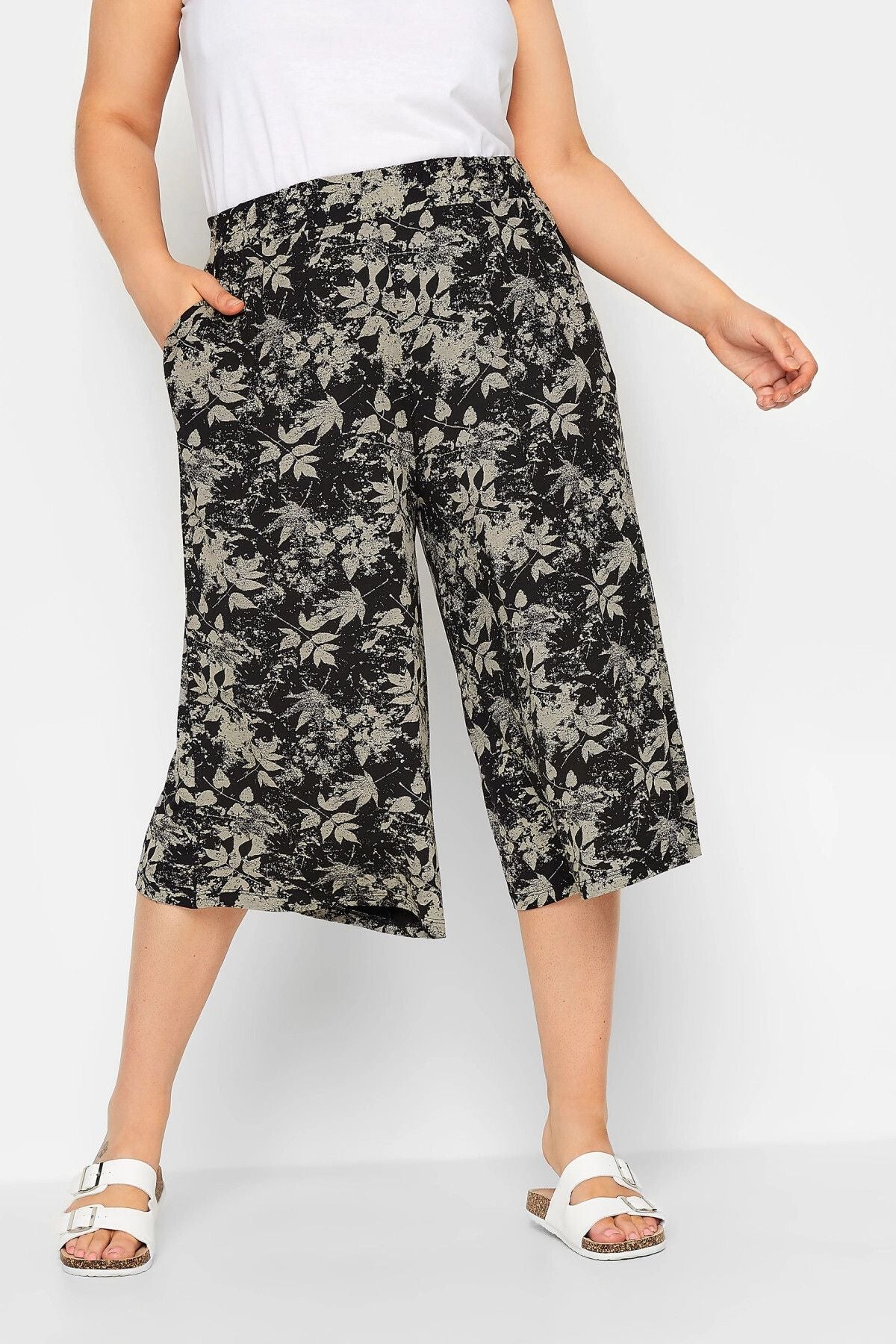 Büyük Beden Desenli Bol Kesim Cepli Likralı Kapri Pantolon 302422