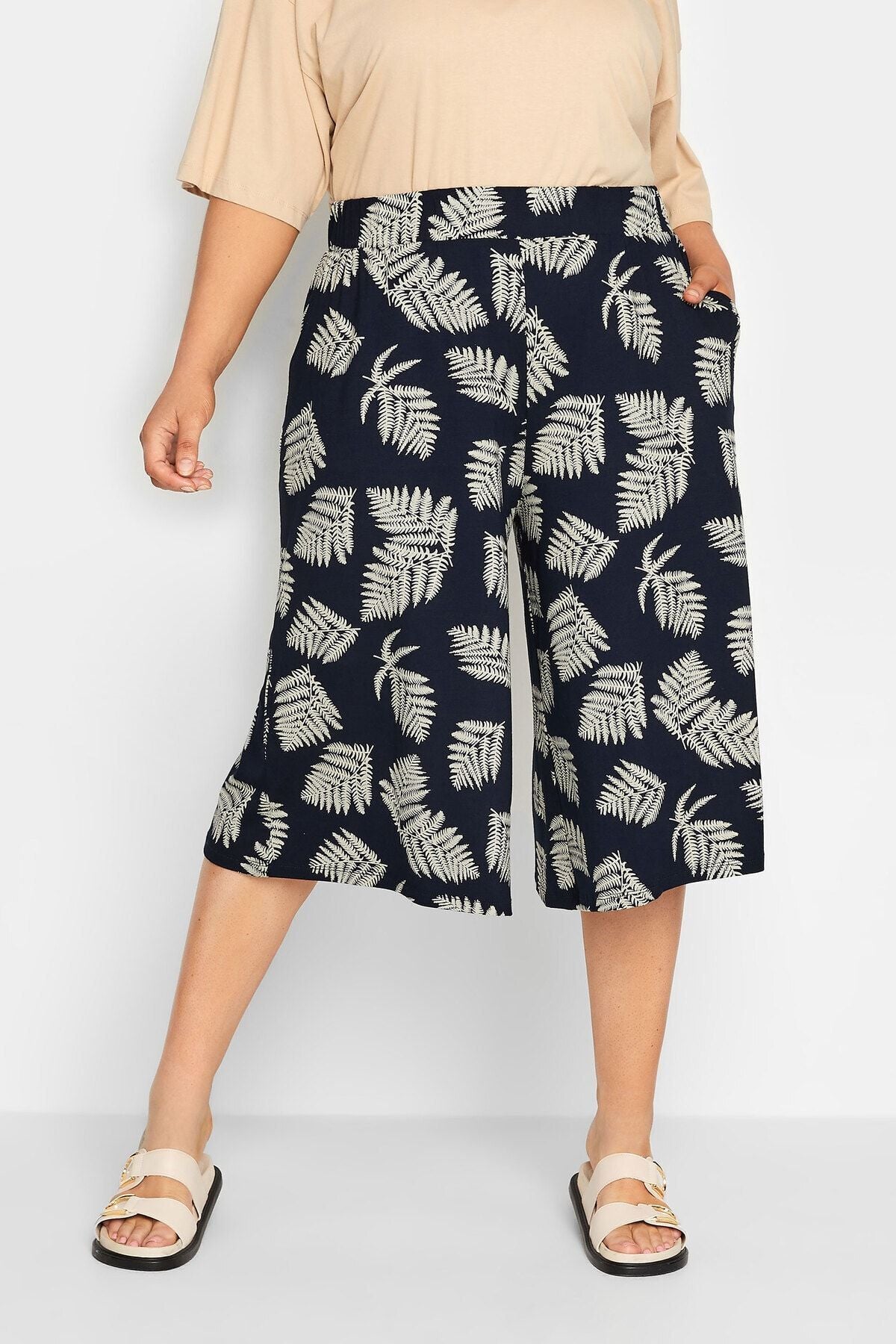 Büyük Beden Desenli Bol Kesim Cepli Likralı Kapri Pantolon 302429