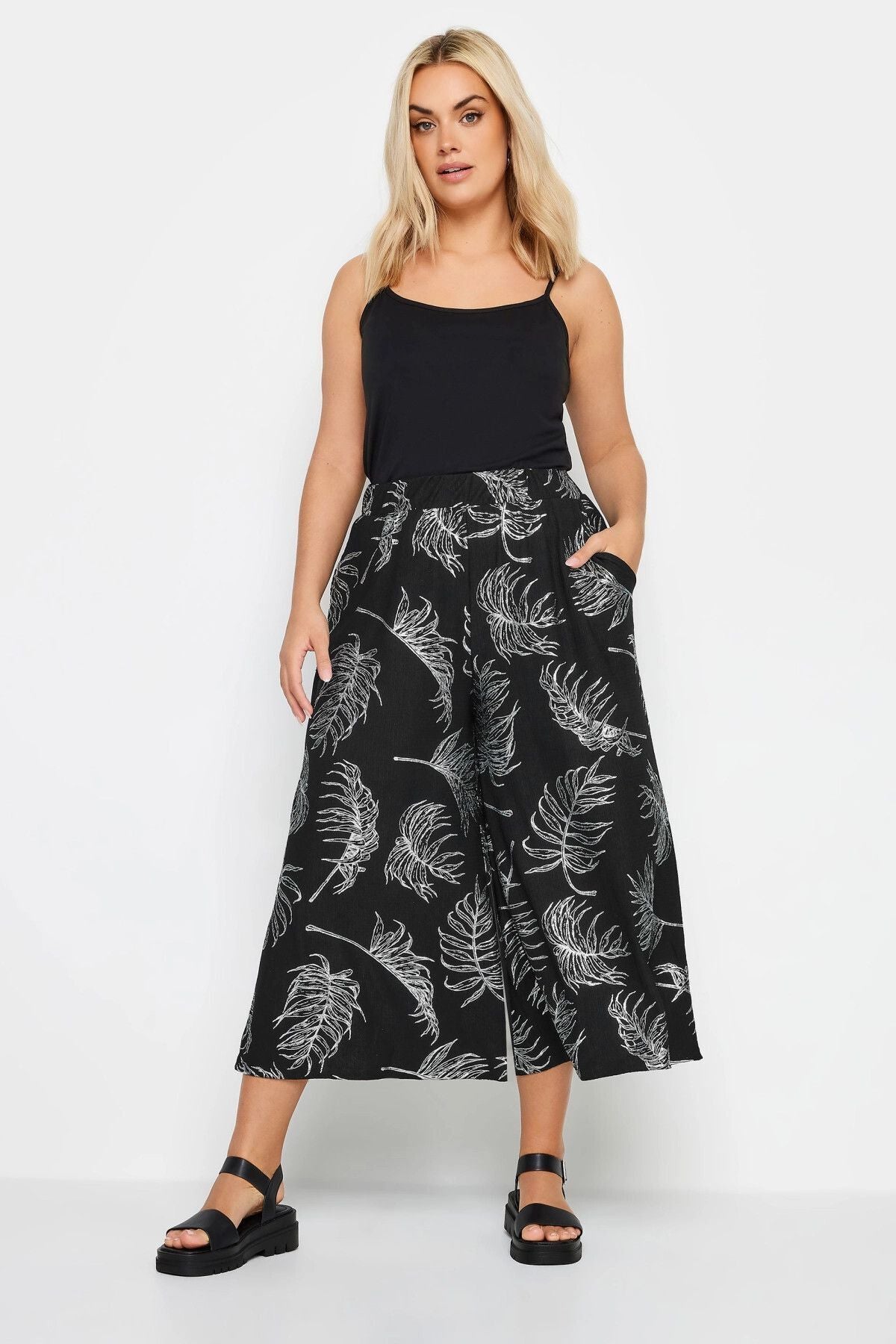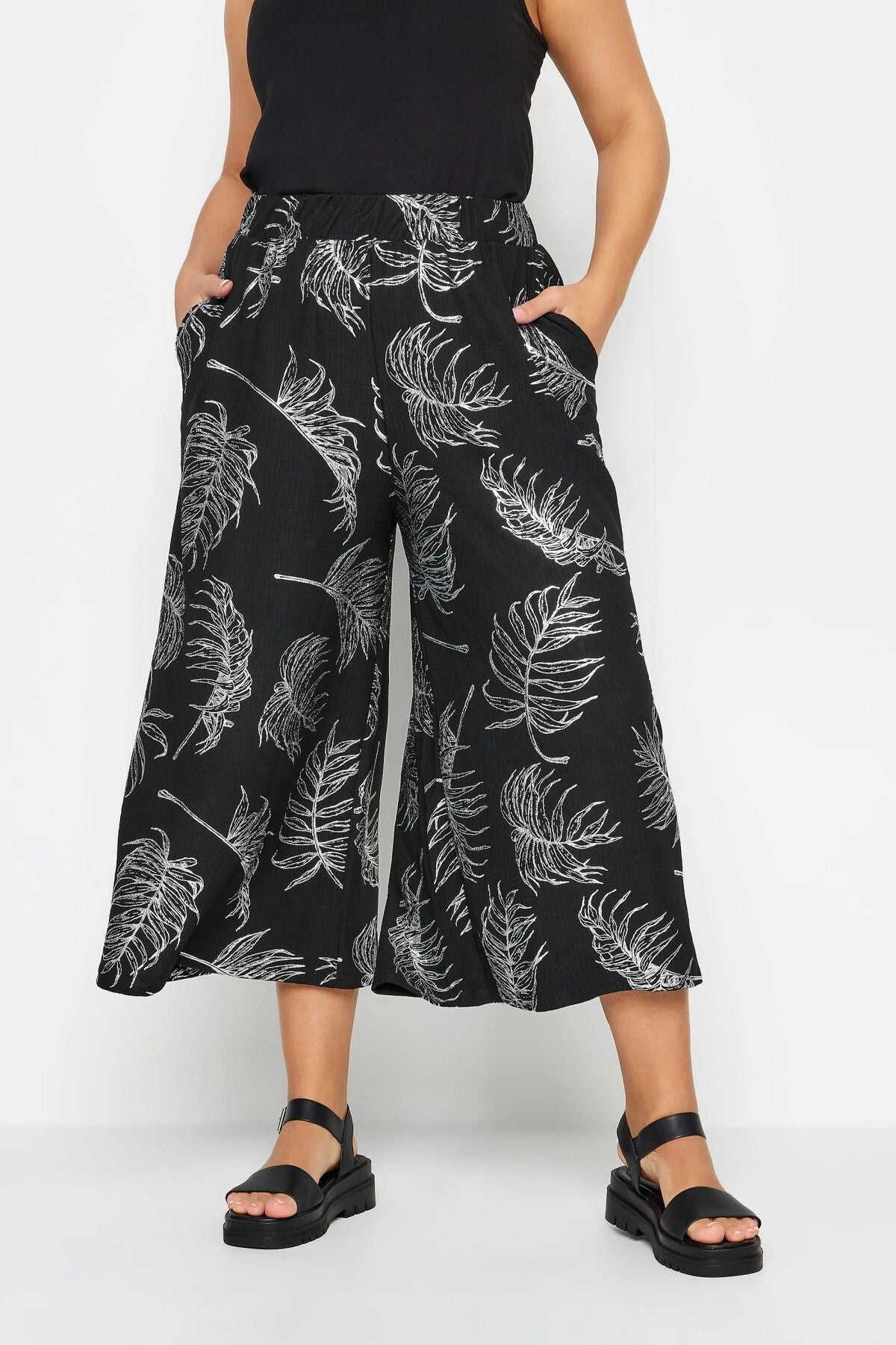 Büyük Beden Desenli Bol Kesim Cepli Likralı Kapri Pantolon 302577