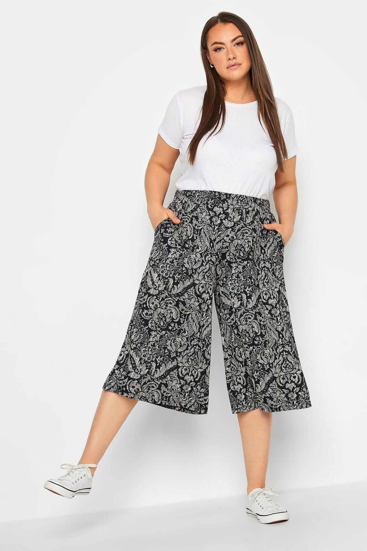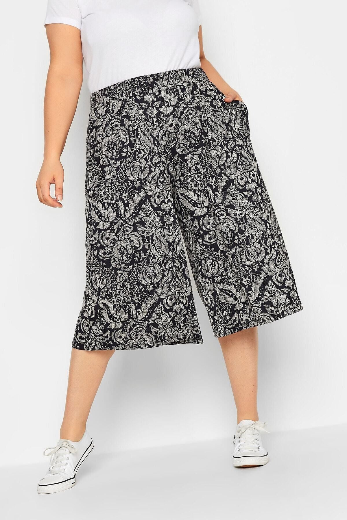 Büyük Beden Desenli Bol Kesim Likralı Kapri Pantolon 302427